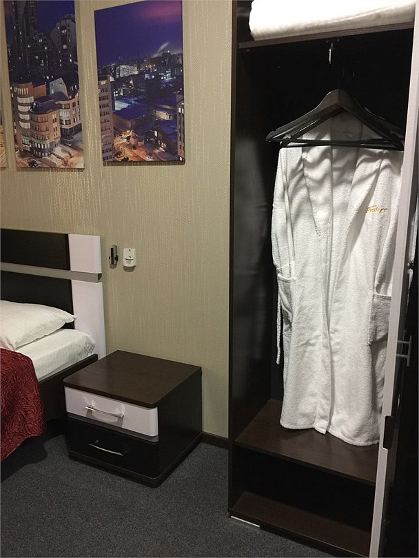 Путешествие с паройХороший небольшой отель за умеренную ценуВ данном отеле были проездом.Все понравилось. Просторный номер, кондиционер, фен, халаты, сытный завтрак в номер к указанному времени, милейшая девушка- администратор. На просьбу дать второе одеяло -сразу же дала второй комплект. Подсказала, где можно вкусно покушать в городе. Расположен не в центре, но нам так и нужно было, чтобы утром продолжить следовать по маршруту. Адекватная цена за проживание.