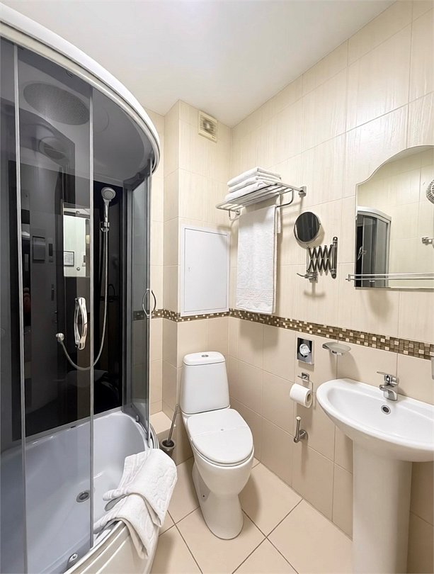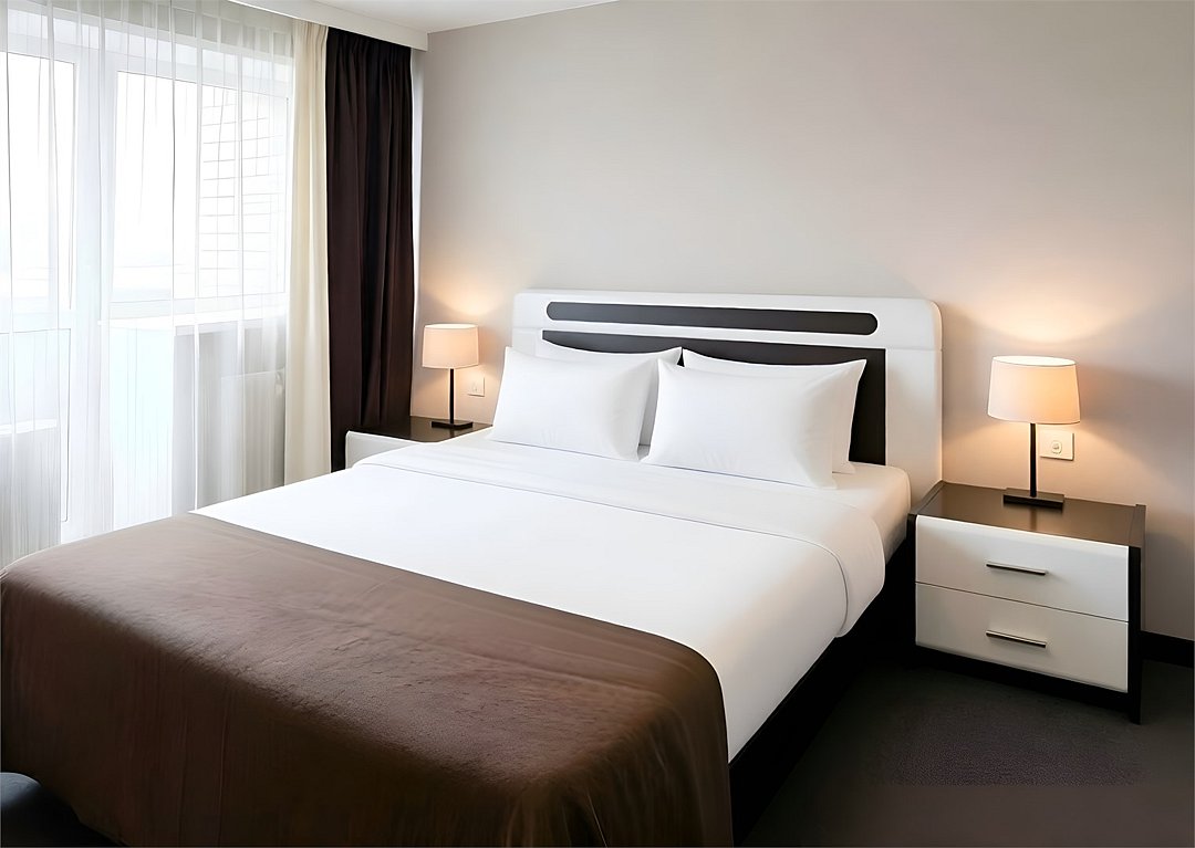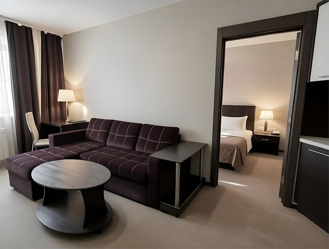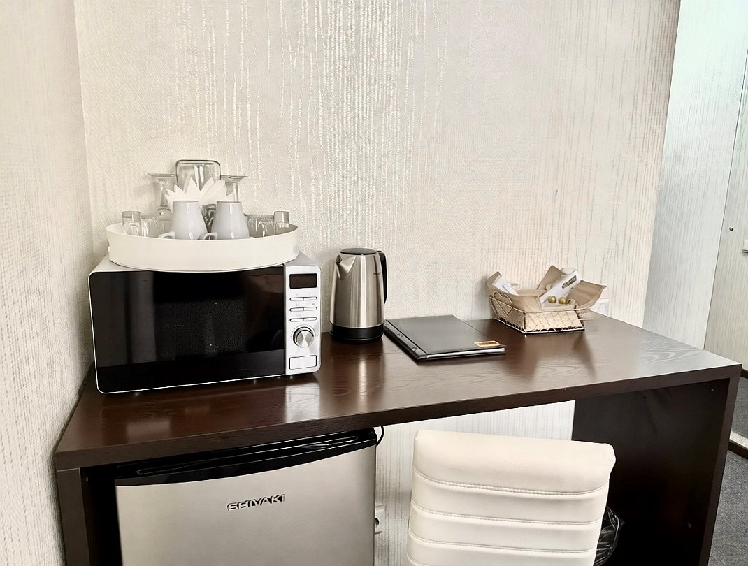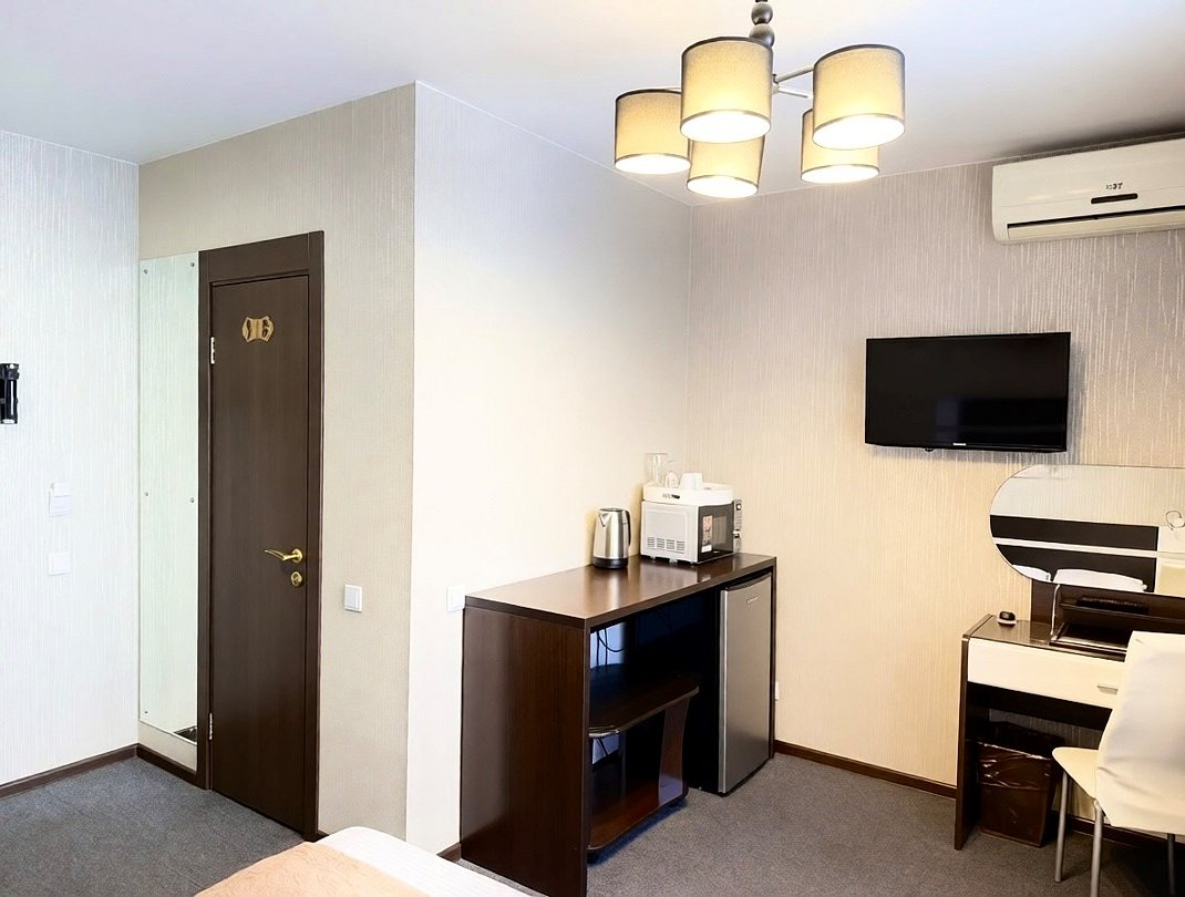 Удобные, уютные и очень просторные однокомнатные номера категории «Suite», созданы для тех, кто превыше всего ценит свой комфорт. В каждом номере имеется кондиционер (в летний период). Телевизор SMART, двуспальная кровать, туалетный столик, тумбочки для личных вещей и вместительный шкаф для одежды. Санузел номера оборудован душевой кабиной и всем необходимым. Выход в Internet по технологии Wi-Fi (бесплатно).Услуги и удобства
