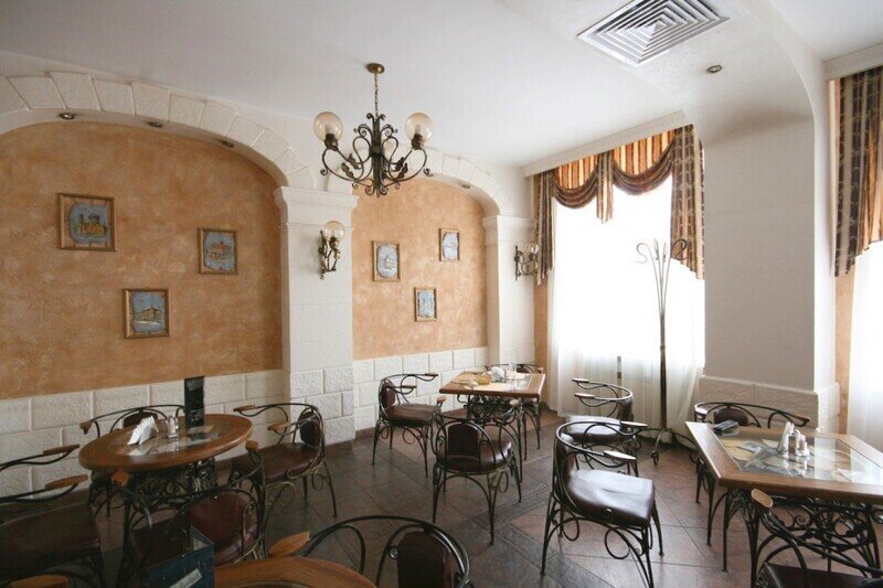 Читать полностьюНа втором этаже гостиницы «Русь» расположено уютное кафе с изысканным благородным дизайном, красивой мебелью и чудесной кухней. В меню кафе входят — легкие закуски, салаты, горячие блюда, ароматный кофе, чай и разнообразные напитки. Кафе принимает заказы на обслуживание в номер и проведение банкетов.