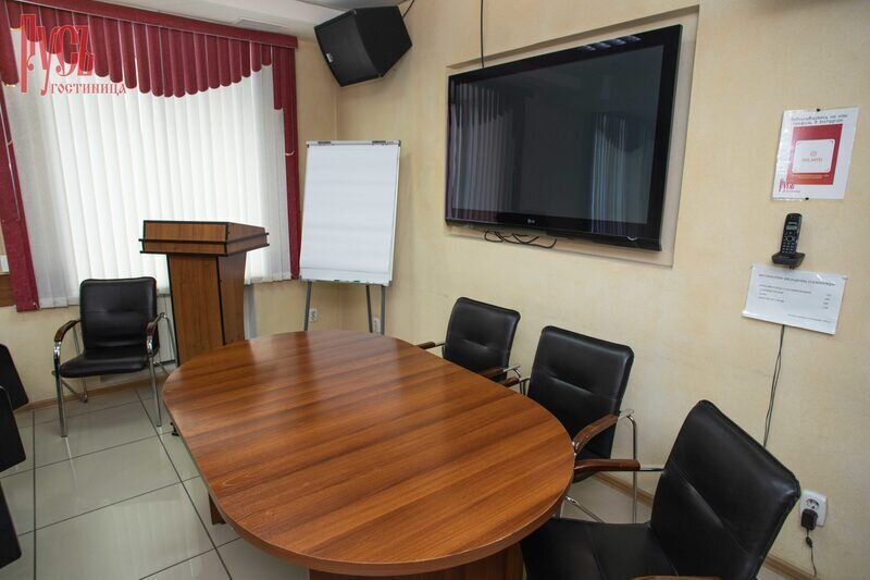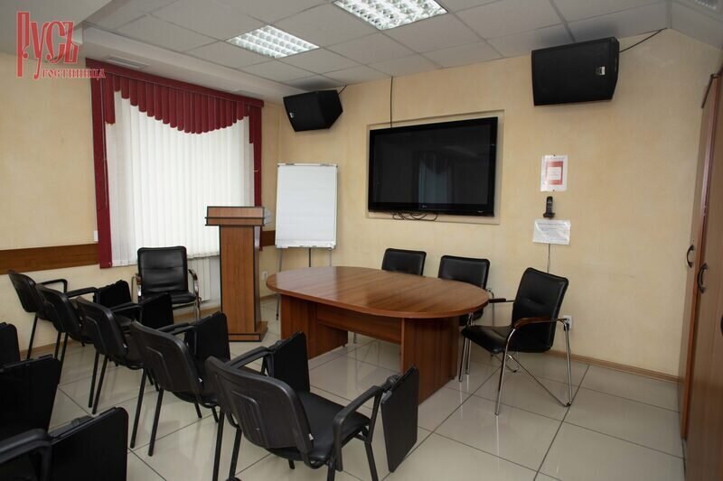 Гостиница «Русь» ценит ваше время и создаёт комфортные условия для решения деловых вопросов в здании гостиницы. Вам предлагается в аренду конференц-зал, расположенный на 2-м этаже гостиницы. Зал оснащен удобной мебелью и всем необходимым оборудованием: