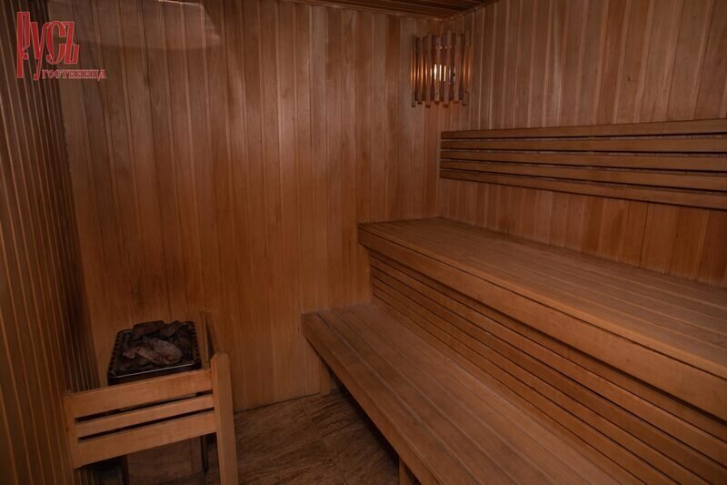высокую температуру (90-110°).В гостинице «Русь» в финской сауне представлены — теплый бассейн, душ, комната отдыха. Вместимость до 6 человек.