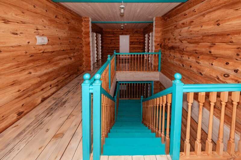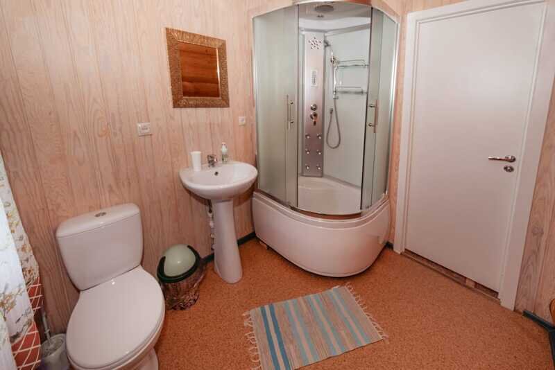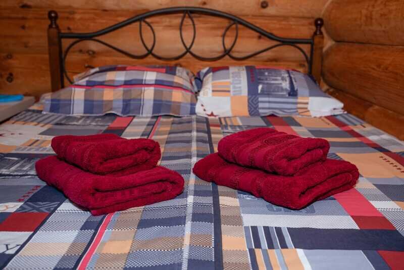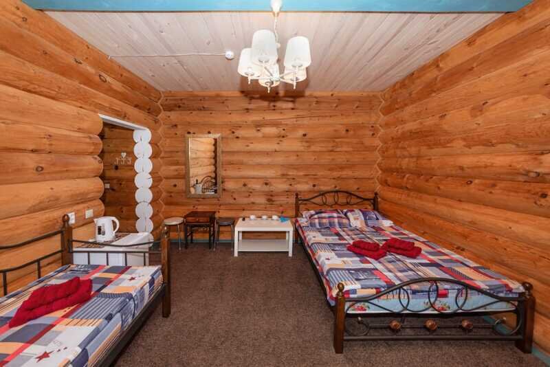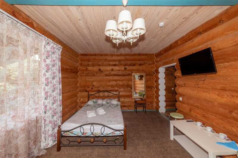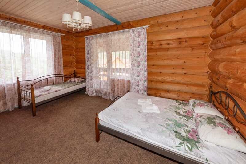Номерной фонд: два двухэтажных кедровых коттеджа по 10 номеров в каждом. Вместимость базы составляет 56 чел. (в том числе 40 основных мест, 16 дополнительных).