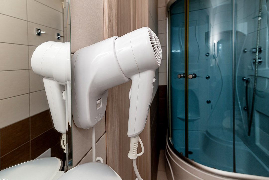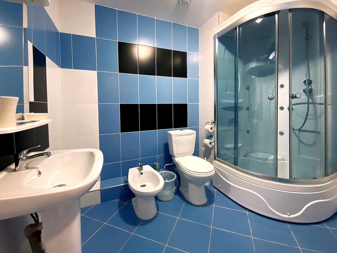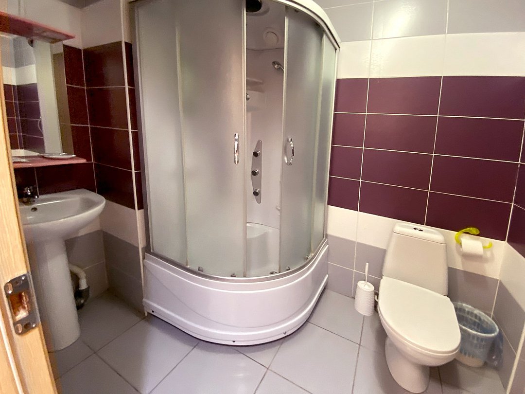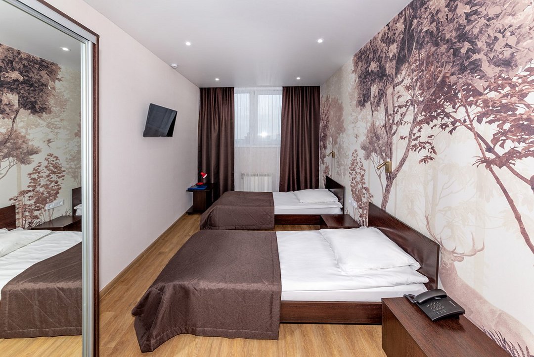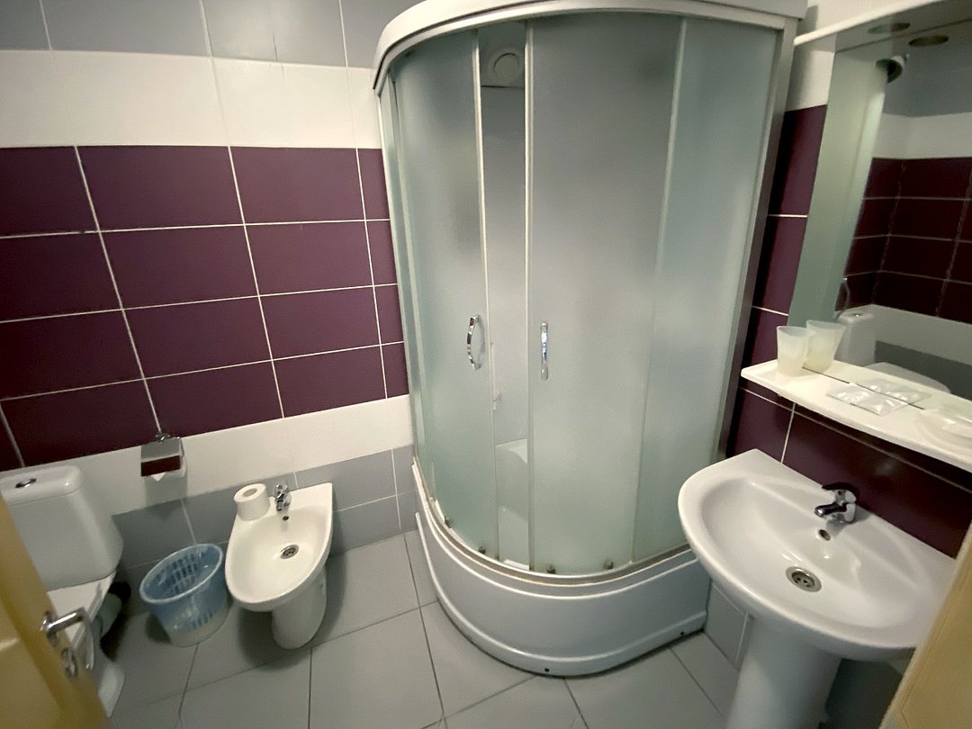 Одна комната (24м.кв): две кровати (90х200 см), стол, стулья, кабельное телевидение, интернет (Wi-Fi), телевизор, кондиционер, телефон. Щетка для обуви, щетка для одежды. Мини-кухня: посуда, СВЧ-печь, холодильник, электрочайник. Ванная комната: душевая кабина, биде, парфюмерно-косметические изделия.Услуги и удобства