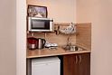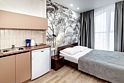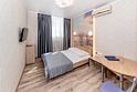 Одна комната (19 м.кв), одна кровать (120х200 см), кондиционер, телевизор (d 54 см), кабельное телевидение, интернет (Wi-Fi), телефон, журнальный столик, стулья, сейф. Щетка для обуви, щетка для одежды. Мини-кухня: посуда, холодильник, СВЧ-печь, электрочайник, фильтр для воды. Ванная комната: душевая кабина, биде, унитаз, парфюмерно-косметические изделия.Услуги и удобства