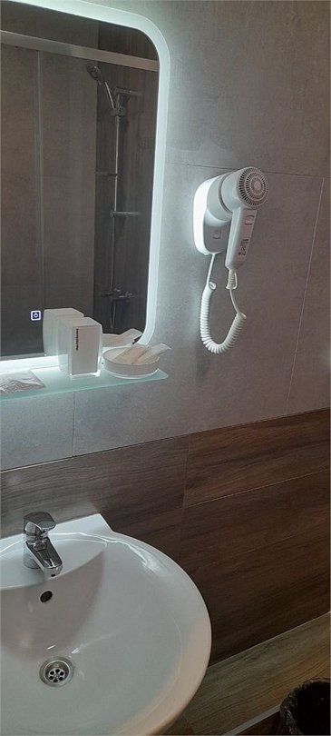 телевизор, кабельное телевидение, Wi-Fi, интернет, телефон, холодильник, кондиционер, фен, микроволновая печь, обогреватель, душевая кабина, биде, двуспальная кровать, шкаф для одежды, вешалки, зеркало, письменные принадлежности, чайный набор, набор посуды, обслуживание номеров, информационная карта, меню, чайник, унитаз, раковина, питьевая вода, отопление, душ, вид на город, столовые приборы, стул, туалетные средства, туалет, внутренний телефон, номер для некурящих, рабочий столВ номере