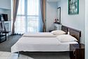 кабельное телевидение, Wi-Fi, интернет, телефон, холодильник, кондиционер, настольные лампы, фен, микроволновая печь, радио, душевая кабина, биде, халаты, тапочки, косметические средства, двуспальная кровать, шкаф для одежды, вешалки, зеркало, унитаз, раковина, душ, вид на город, стул, туалетные средства, туалет, внутренний телефон, рабочий столВ номере