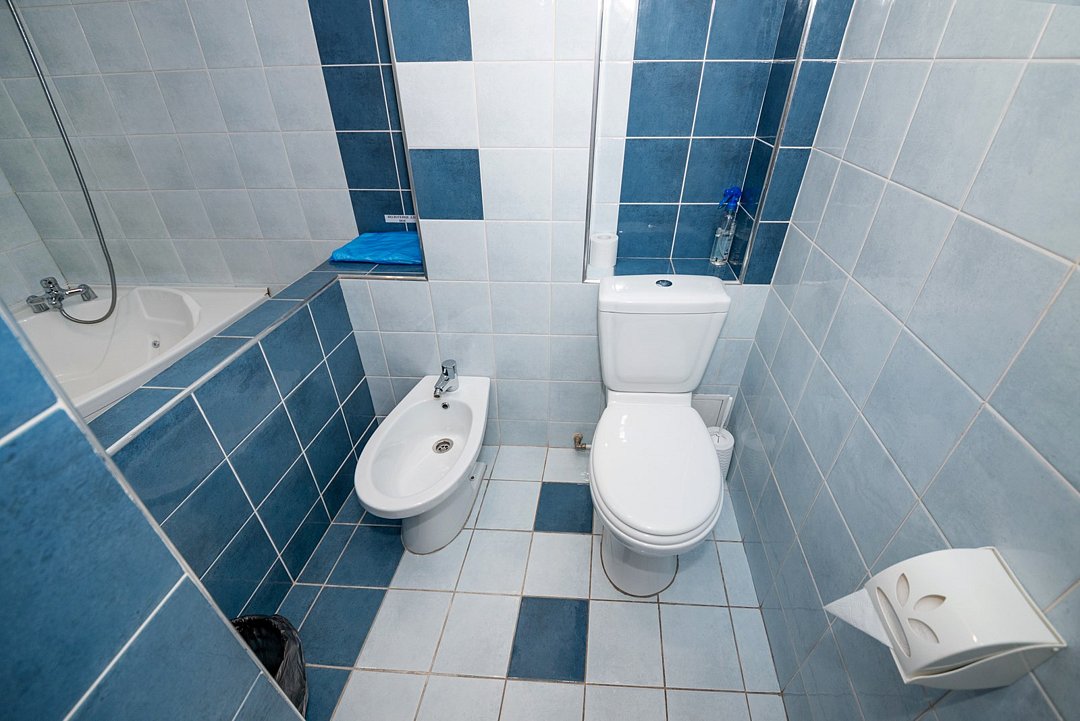 Одна комната (18 м.кв): одна кровать (90х200 см), кондиционер, телевизор (d 54 см), кабельное телевидение, интернет (Wi-Fi), телефон, стол рабочий, стулья, сейф. Щетка для обуви, щетка для одежды. Мини-кухня: посуда, холодильник, СВЧ-печь, электрочайник, фильтр для воды. Ванная комната: душевая кабина, биде, унитаз, парфюмерно-косметические изделия.Услуги и удобства