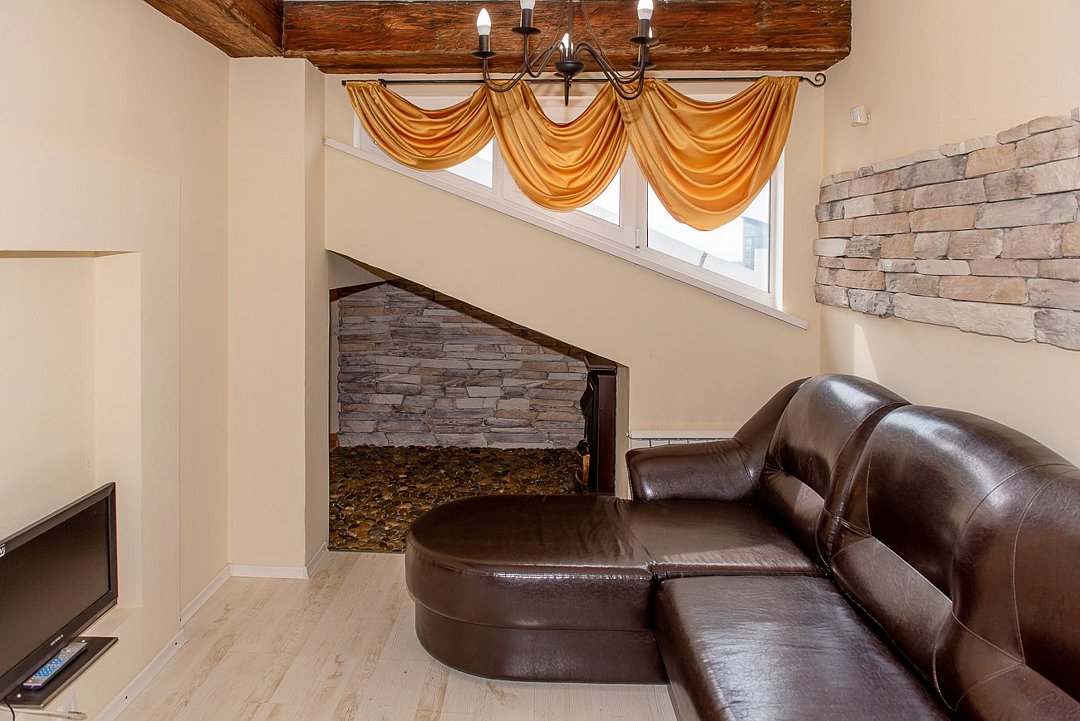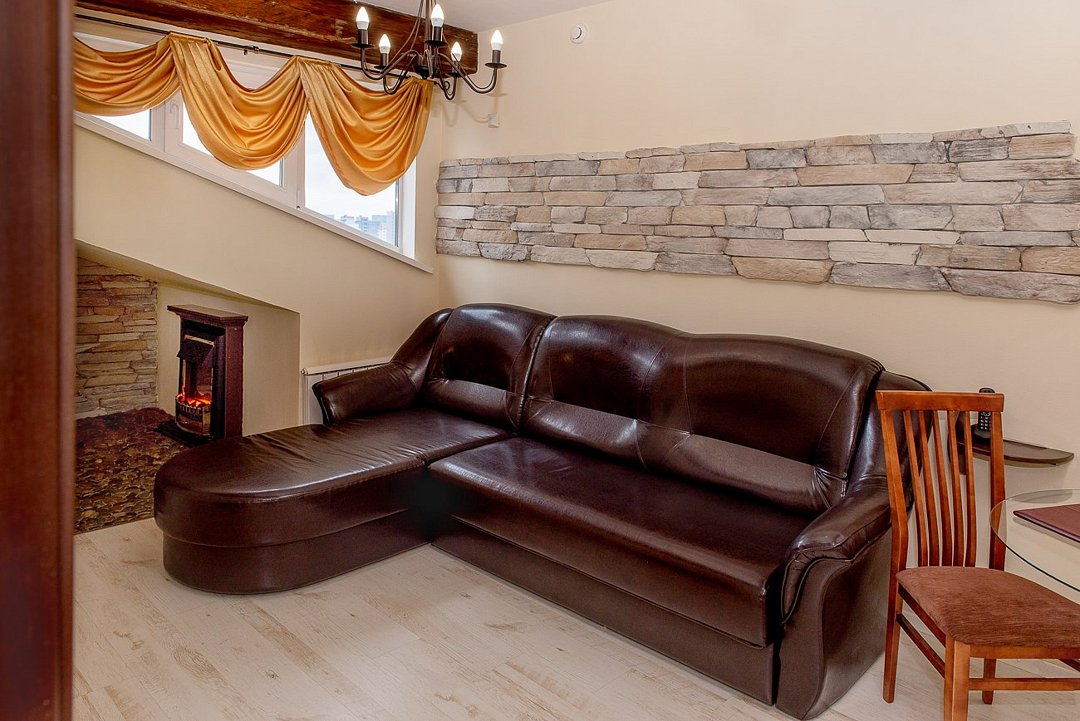 «Английский» – это классический английский стиль со всем его величием и бесподобностью. Это шик и роскошь, которыми может обладать стиль истинной Англии. Две комнаты (45 м.кв): одна кровать (180х200 см), гардероб, мягкая мебель, круглый стол, стулья, два телевизора (d 72 см, d 54 см), кабельное телевидение, интернет (Wi-Fi), телефон, кондиционер, электрокамин. Щетка для обуви, щетка для одежды. Мини-кухня: посуда, СВЧ-печь, холодильник, электрочайник, фильтр для воды. Ванная комната: ванна, биде, фен стационарный, халат махровый, разовые тапочки, парфюмерно-косметические изделия.Услуги и удобства
