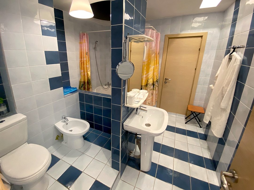 кабельное телевидение, Wi-Fi, интернет, телефон, холодильник, кондиционер, фен, микроволновая печь, радио, обогреватель, ванна или душевая кабина, биде, халаты, тапочки, гигиенические средства, косметические средства, двуспальная кровать, диван, шкаф для одежды, журнальный столик, зеркало, унитаз, раковина, душ, вид на город, стул, туалетные средства, туалет, внутренний телефон, рабочий столВ номере