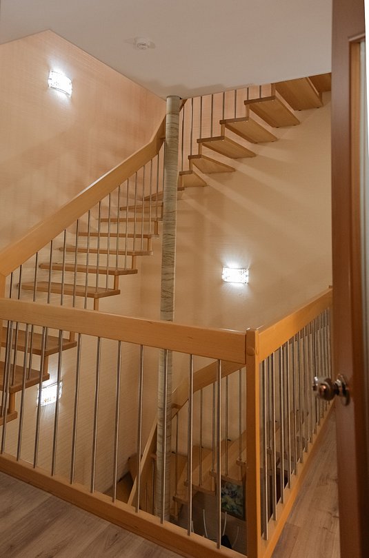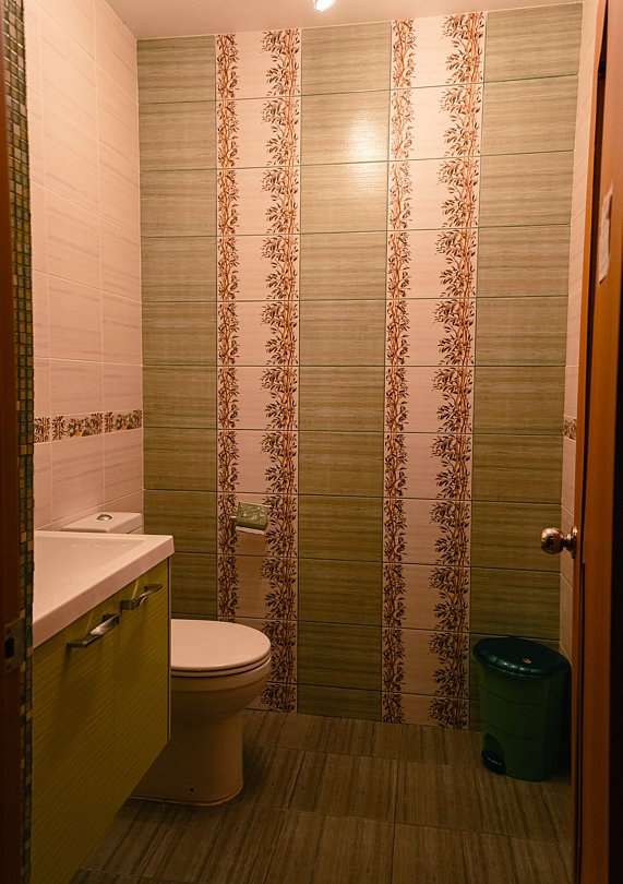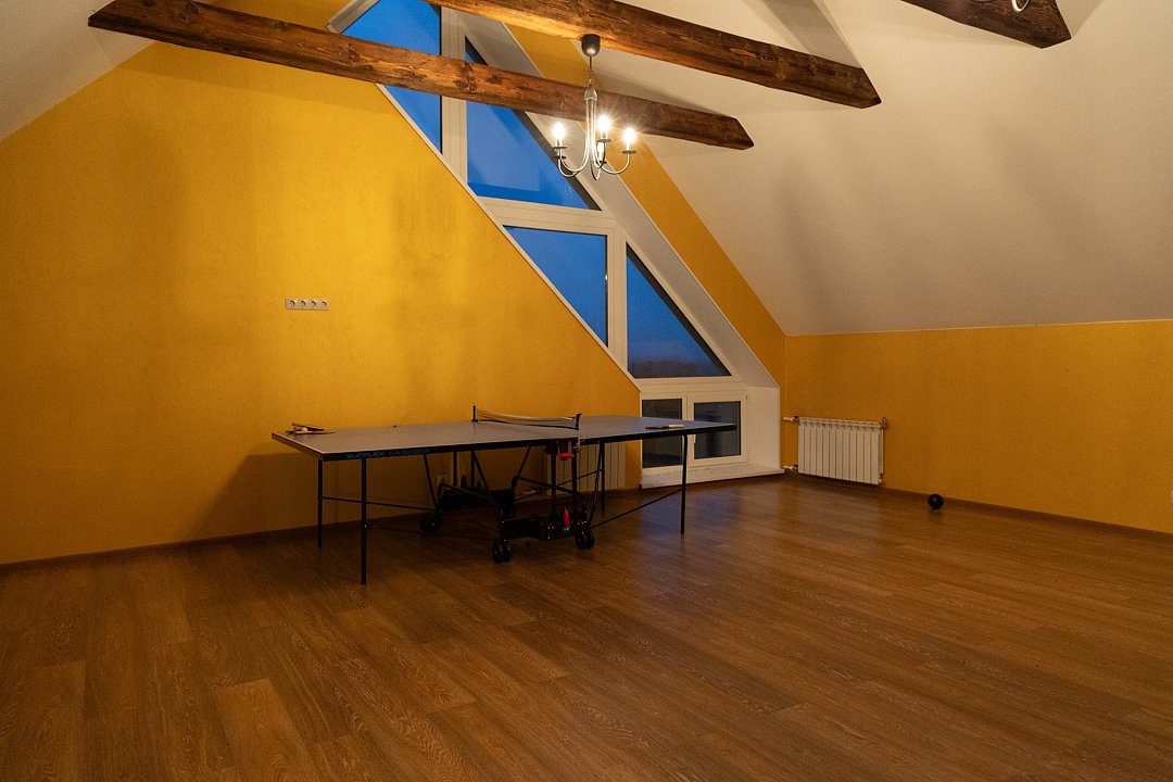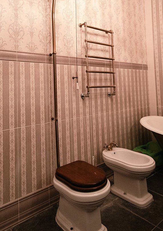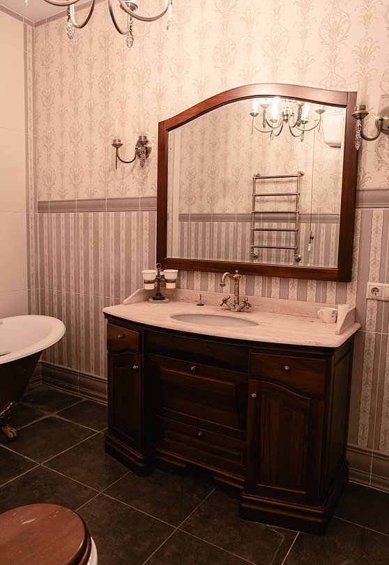 В доме есть ванные комнаты и стиральная машина. Особой гордостью является собственная баня, посещение которой уже включено в стоимость проживания.