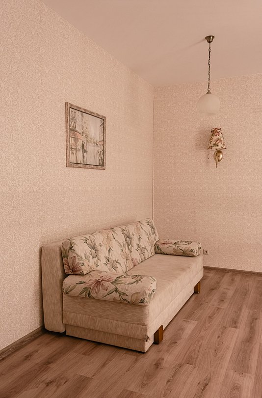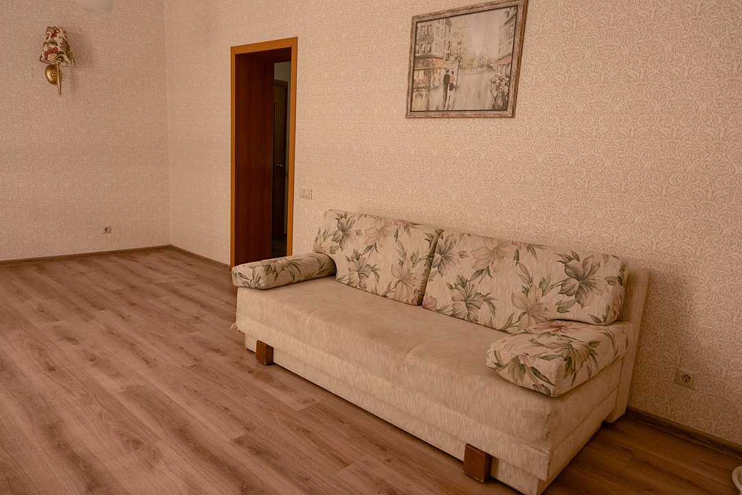 Гостям доступна полностью оборудованная кухня с газовой плитой, чайником, микроволновой печью, посудомоечной машиной и полным набором посуды. В просторной гостиной вас ждет удобный диван и кресло для отдыха, а также телевизор.