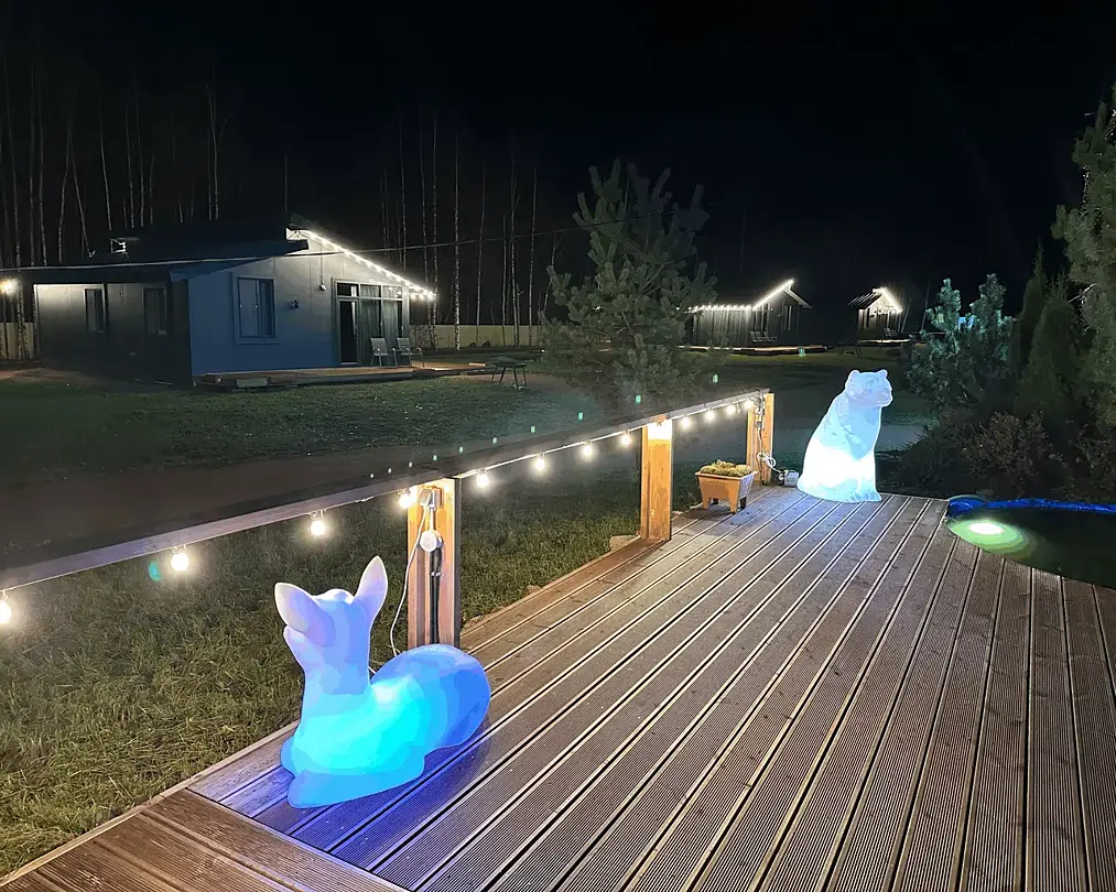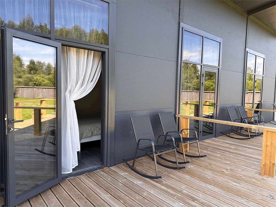 Современное оснащение домов соответствует европейскими стандартами. В каждом доме есть электрокамин, установлен теплый пол. Панорамные окна с выходом на собственную террасу, мангальную и костровую зону расширят пространство вашего отдыха. Отличный сервис и радушие персонала гостиницы, оставят самые положительные эмоции.