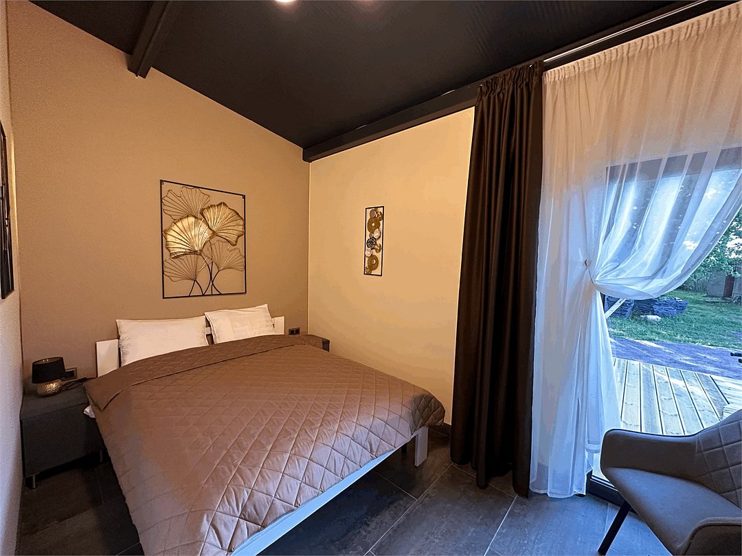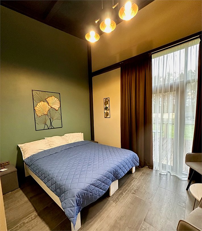 Современное и стильное оснащение номеров соответствует европейскими стандартами. В каждом номере есть электрокамин, установлен теплый пол. Панорамные окна с выходом на собственную террасу расширят пространство вашего отдыха, а затемняющие шторы, позволят выспаться в комфорте и прохладе. На территории комплекса есть мангальные зоны. Отличный сервис и радушие персонала гостиницы, оставят самые положительные эмоции.