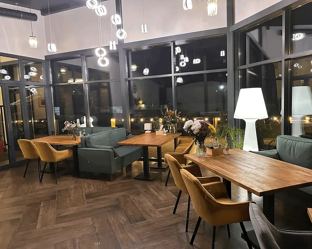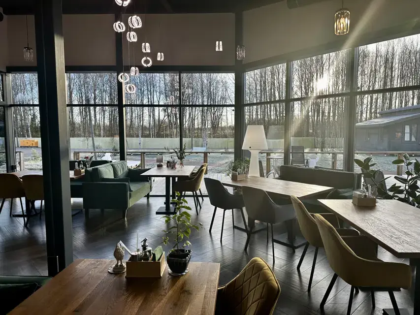 На территории комплекса расположен ресторан Таверна, где вам предложат блюда из фермерской продукции, такой как фермерская утка, домашняя кура, сырники на цесариных яйцах, запечённый цыпленок — корнишон с овощами.