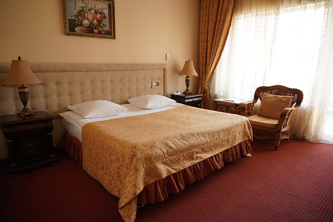 Для проживания гостей доступны 14 уютных номеров с кондиционером, телевизором, телефоном, европейской сантехникой, односпальными/двуспальными кроватями и мебелью из массива. Комнаты отличаются особенностями интерьера, дизайном, технической оснащенностью, планировкой и комфортабельностью. Все номера имеют отдельный санузел с душевой кабиной или ванной.