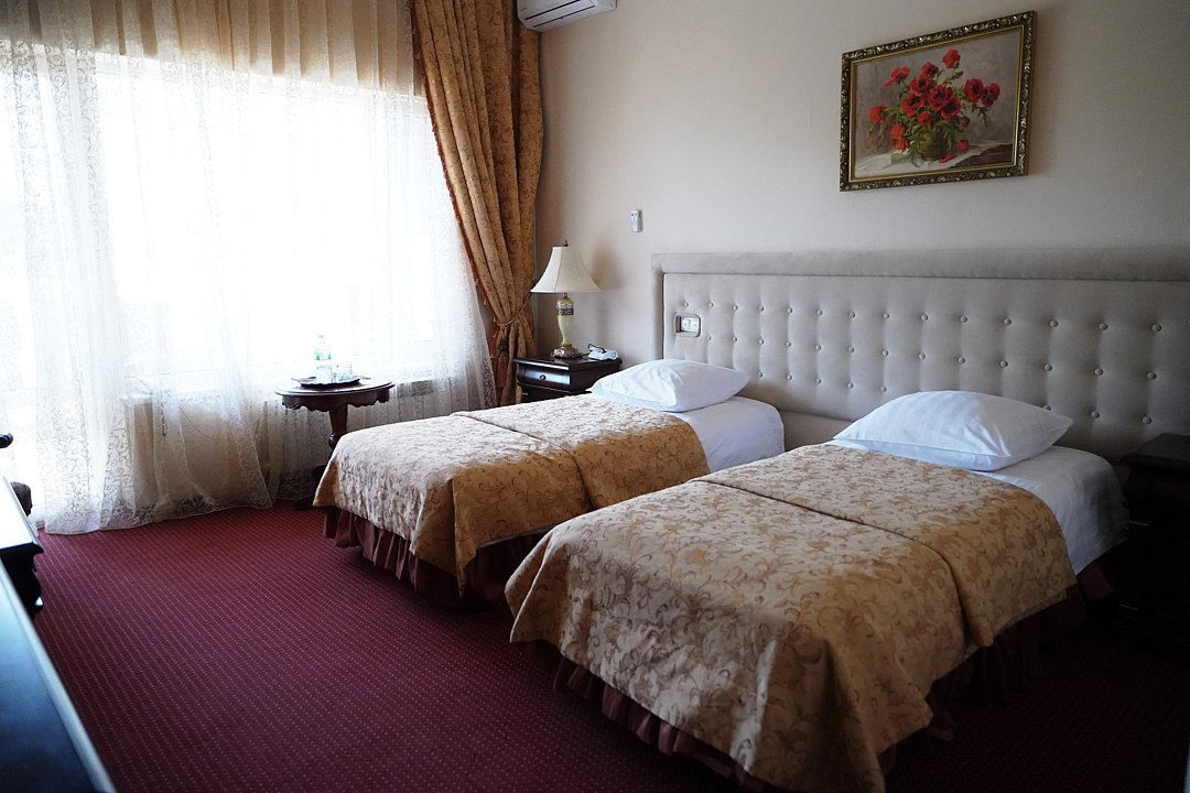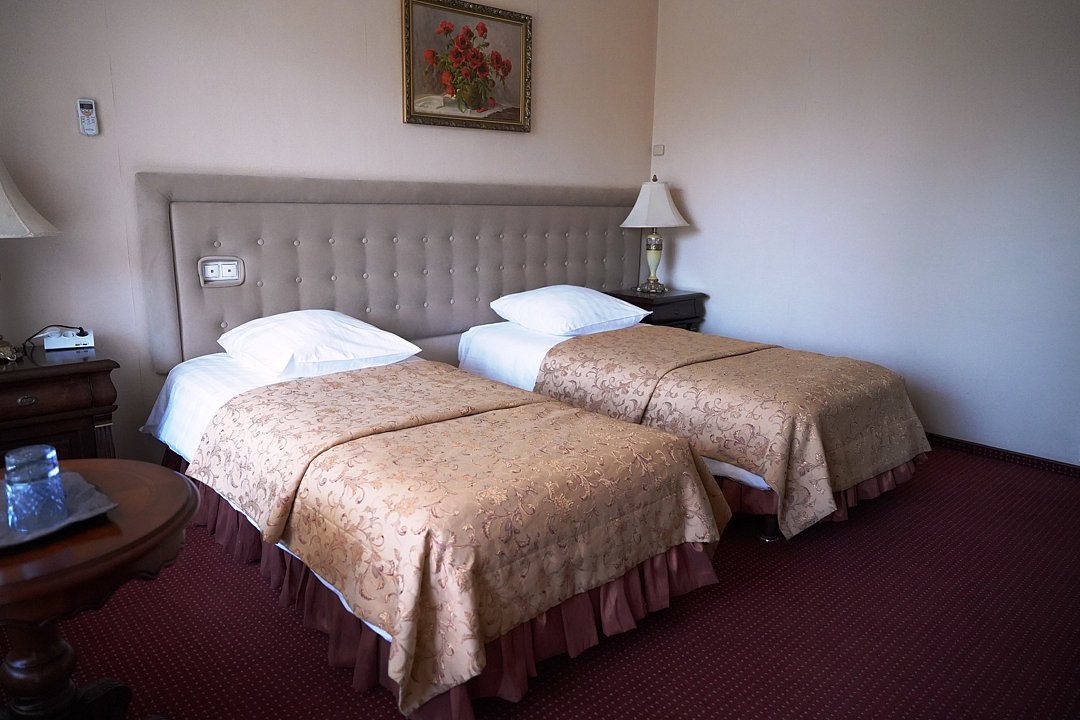 Уютный однокомнатный номер с двумя односпальными кроватями. Возможна установка дополнительного спального места — раскладной кровати.
