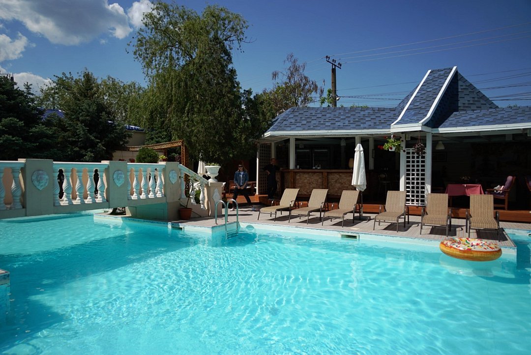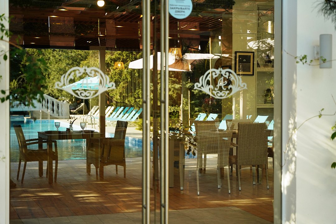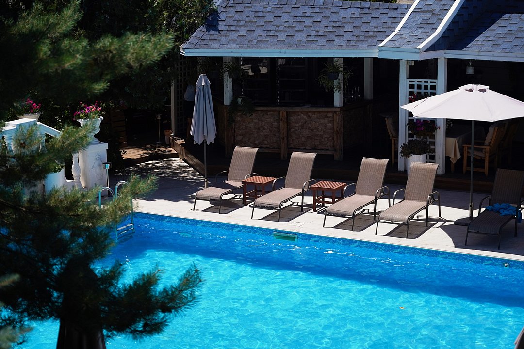 На территории в распоряжении отдыхающих открытый бассейн с зоной отдыха, русская баня из сруба северной сосны, финская сауна с тёплым бассейном, охраняемая автостоянка на 15 автомобильных мест, ресторан. Для малышей оборудована детская площадка с горками и песочницей. Круглосуточно работает Internet Wi-Fi и камеры видеонаблюдения.