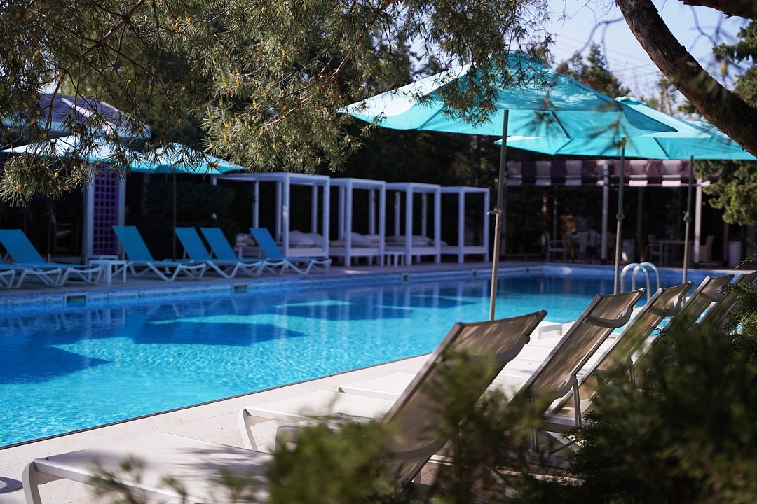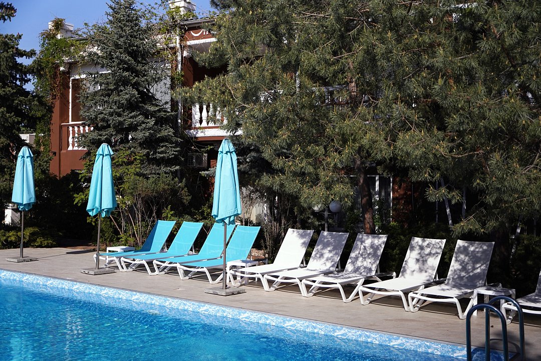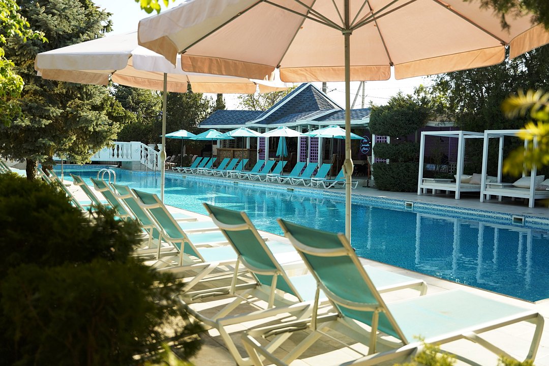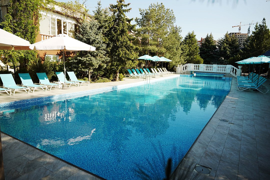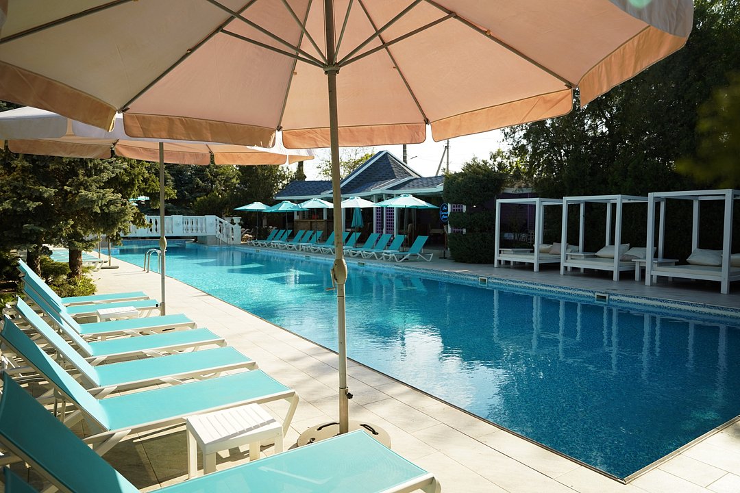 Тип бассейна: открытый бассейнВода в бассейне: подогреваемый бассейнРядом с бассейном: шезлонги, зонтики, бар у бассейнаТемпература в бассейне: 30 °CВремя работы: от 10:00 до 21:00Глубина: 200 смАква-зона после полной реконструкции в 2022 году.