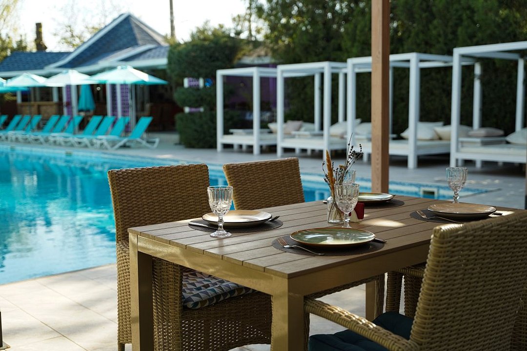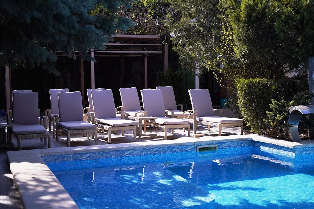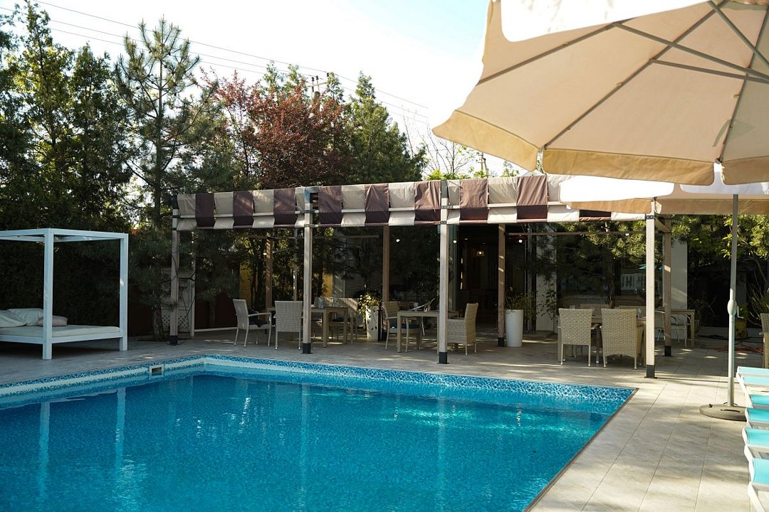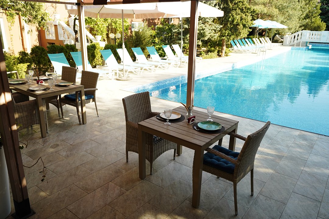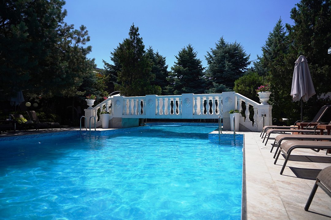Тип бассейна: открытый бассейн, детский бассейнРядом с бассейном: шезлонги, зонтикиТемпература в бассейне: 32 °CВремя работы: от 10:00 до 21:00Глубина: 75 смСтоимость