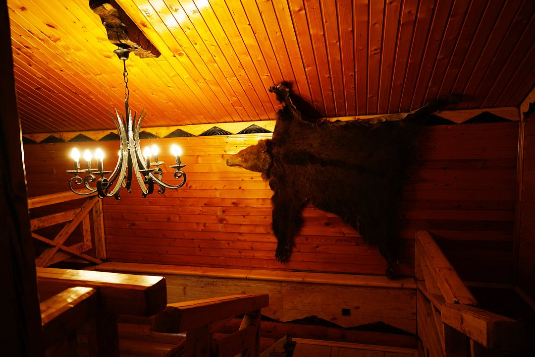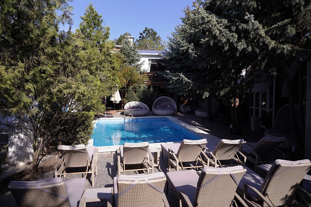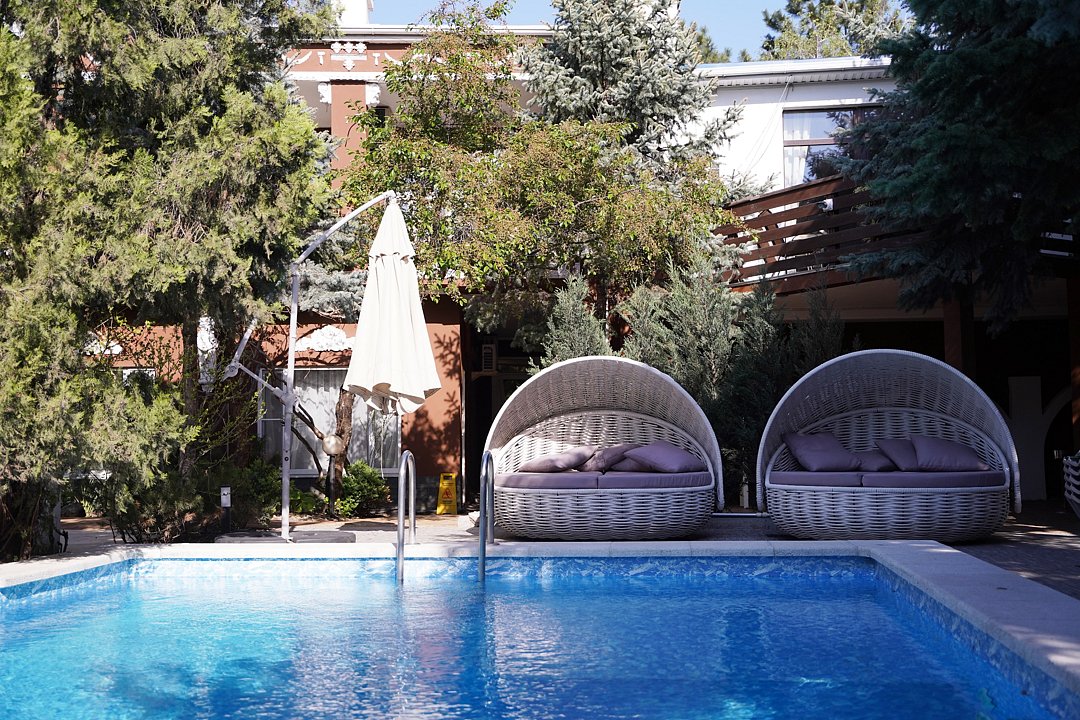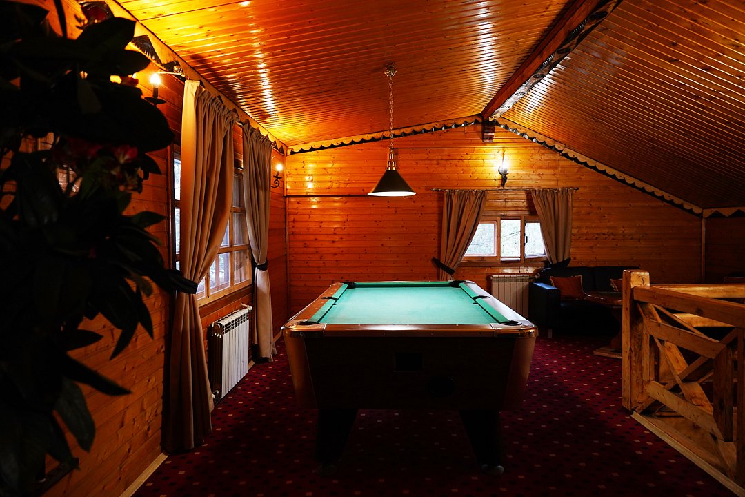В распоряжении гостей комната отдыха, гостиная с мебельным гарнитуром, жаркая финская сауна и подогреваемый бассейн.