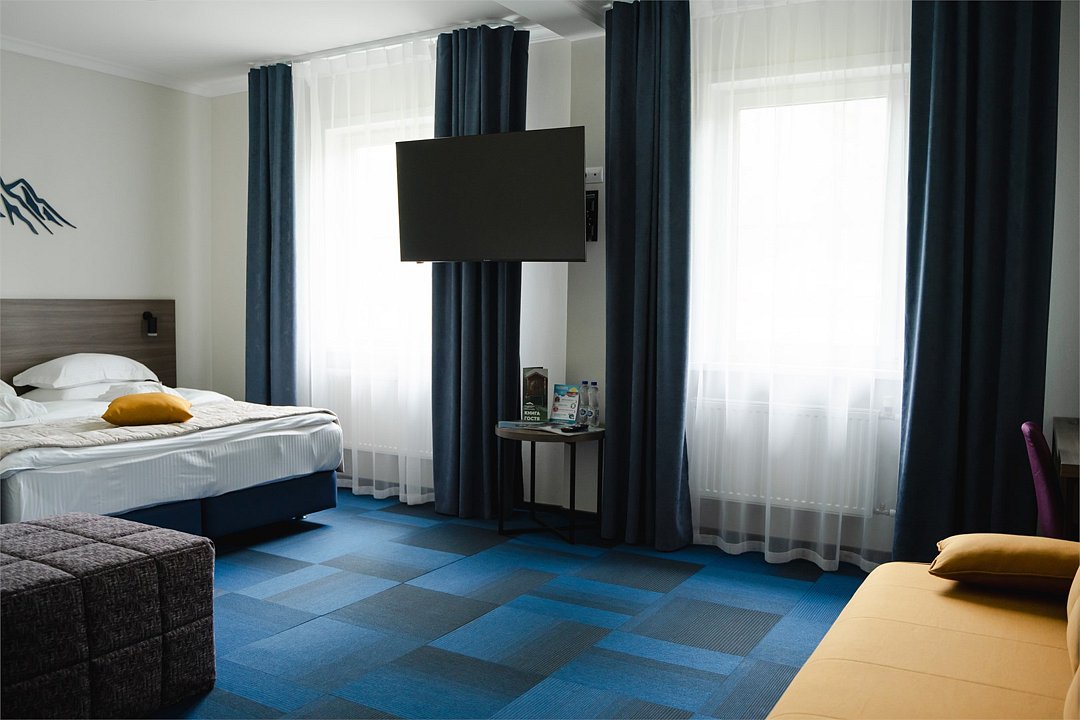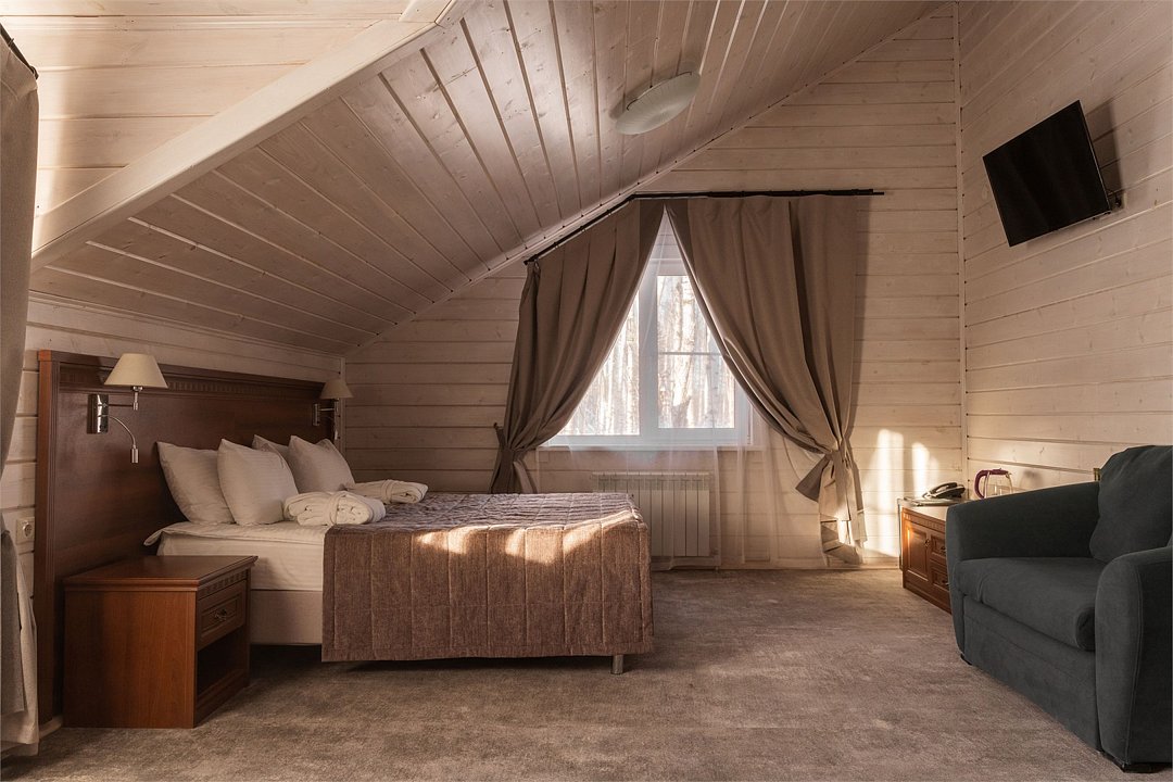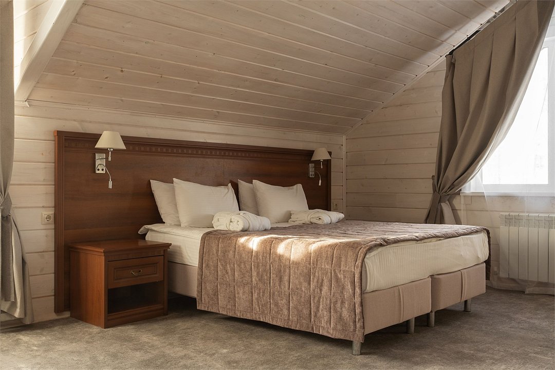 Просторные, уютные номера площадью в среднем 28 м2. Располагаются как в основном, так и в отдельно стоящих корпусах. Номер оснащен всем необходимым для комфортного проживания.Услуги и удобства