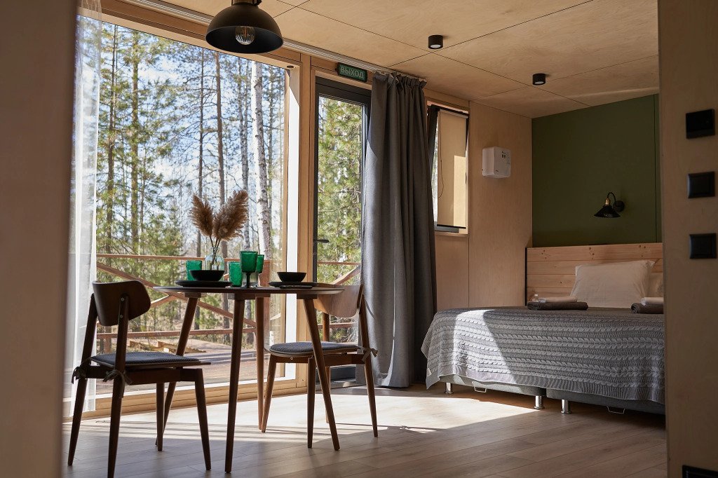 В номере вы найдёте телевизор. Оснащение зависит от выбранной категории номера.