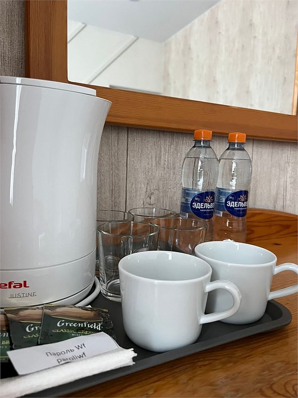 кабельное телевидение, Wi-Fi, светильник, обогреватель, ванная комната, душевая кабина, санузел, двуспальная кровать, полутораспальная кровать, две односпальные кровати, шкаф для одежды, вешалки, журнальный столик, зеркало, чайный набор, чайник, раковина, питьевая вода, ковровое покрытие, отопление, душ, вид во двор, стаканы, туалетные средства, телевизор с плоским экраном, номер для некурящихВ гостиничном номере