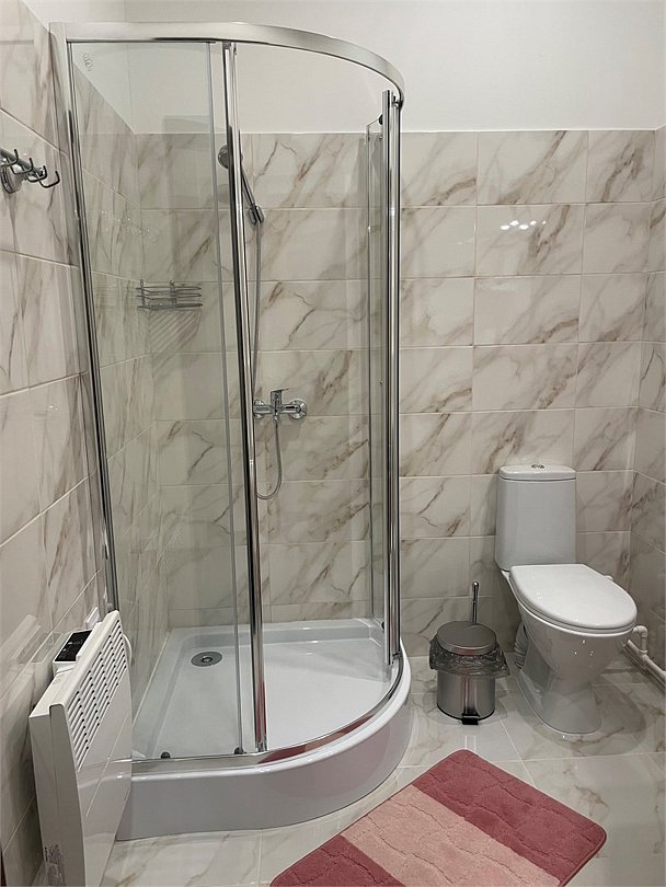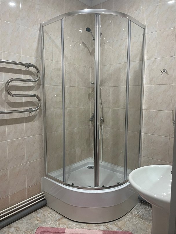 Wi-Fi, интернет, обогреватель, душевая кабина, гигиенические средства, двуспальная кровать, шкаф для одежды, вешалки, журнальный столик, зеркало, чайный набор, чайник, унитаз, отопление, вид во двор, стаканы, туалетные средства, телевизор с плоским экраном, телевизор со Smart TV, пуфикВ гостиничном номере