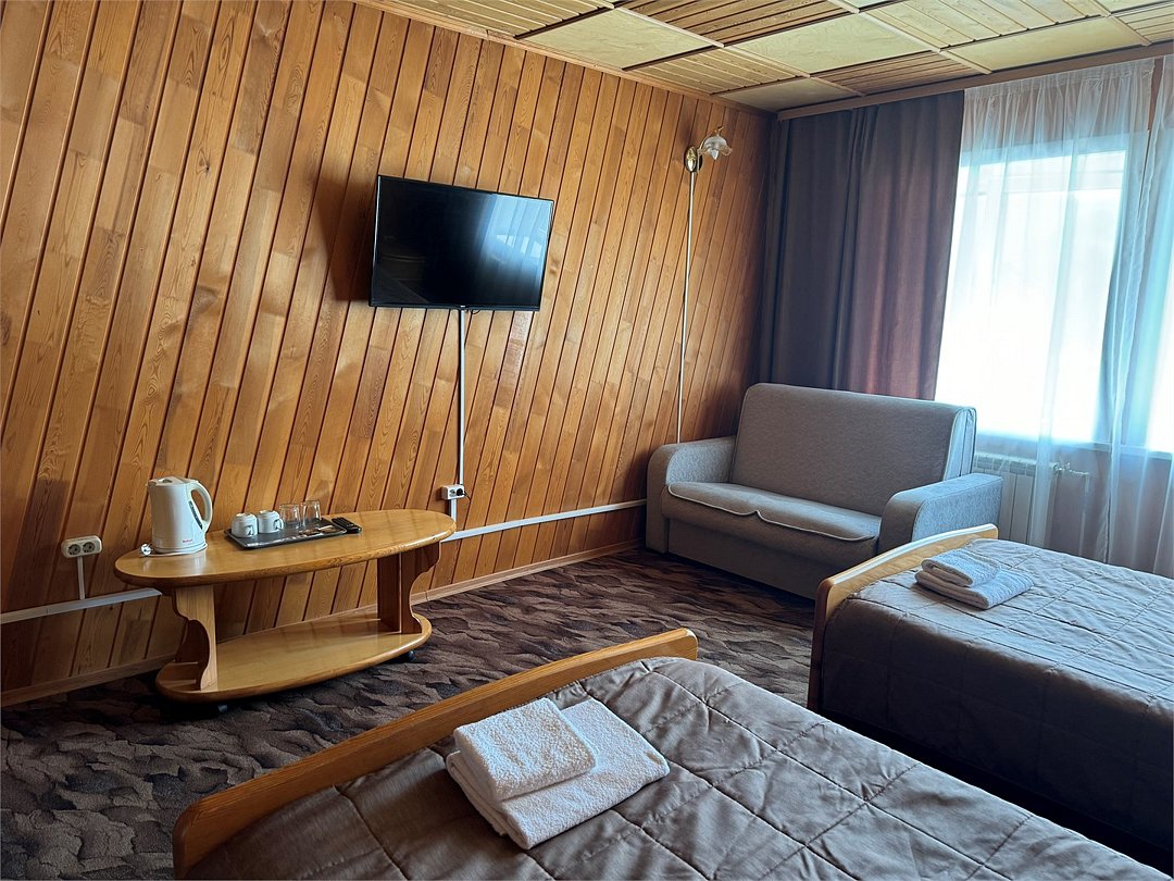 кабельное телевидение, Wi-Fi, светильник, обогреватель, ванная комната, душевая кабина, санузел, две односпальные кровати, диван, шкаф для одежды, вешалки, журнальный столик, зеркало, чайный набор, чайник, раковина, питьевая вода, ковровое покрытие, отопление, вид во двор, туалетный столик, туалетный столик, туалетные средства, диван-кровать, телевизор с плоским экраном, вид на горы, номер для некурящих, пуфикВ гостиничном номере
