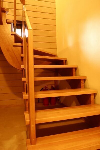На первом этаже: два вестибюля с гардеробом и сушилкой для спортивного инвентаря, отдельный туалет, просторная гостиная с удобными диванами, журнальным столиком, спутниковым телевидением, DVD, оборудованная кухня с большим столом для проведения уютных ужинов.