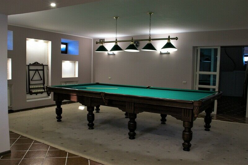 Бильярдная комната с 12 футовым бильярдным столом, столом для игры в нарды, покер и барной стойкой.