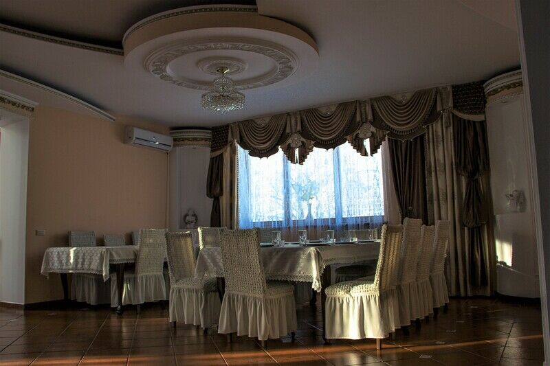 На территории находится два банкетных зала:на 25 и 70 человек, предоставляется посуда, возможно привести свою или арендовать аппаратуру и светомузыку.