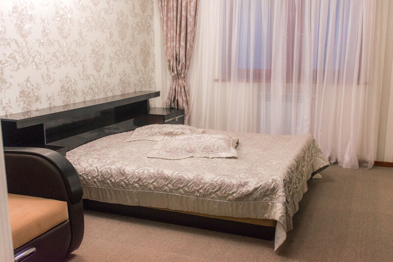В номере: двухспальная кровать, кресло-кровать, кондиционер, телевизор, туалет и душевая кабина.