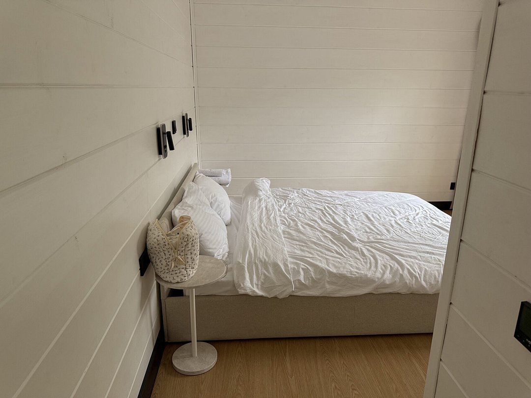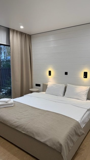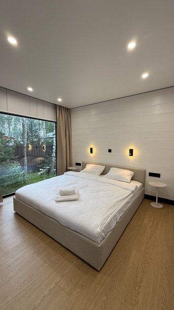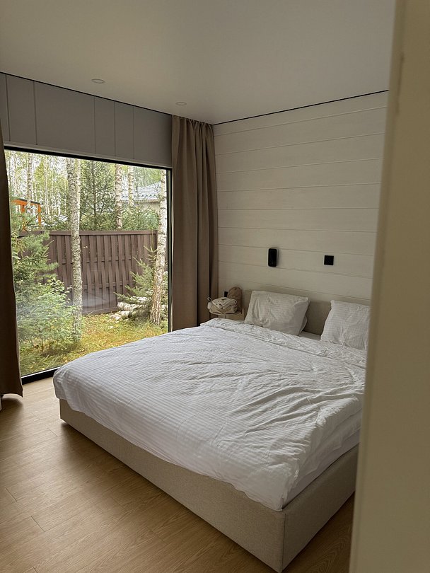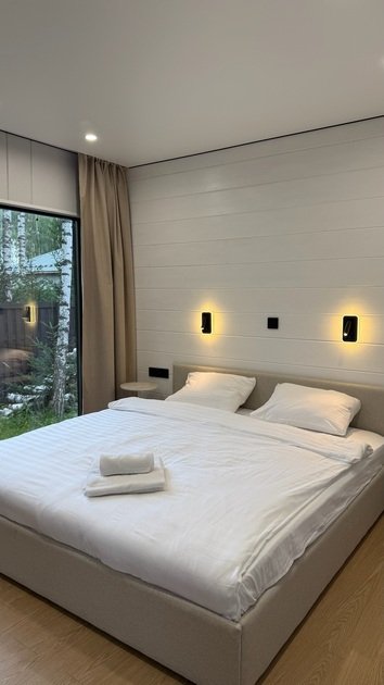 Интерьер коттеджа продуман до мелочей, чтобы обеспечить максимальный комфорт. Две отдельные спальни создают идеальные условия для спокойного сна, а функциональная кухня-гостиная становится центром для семейных ужинов. Современная мебель и бытовая техника, а также полный набор посуды создают атмосферу домашнего уюта и тепла. Чистые постельные принадлежности и полотенца добавляют штрихи заботы и внимания к каждой детали.