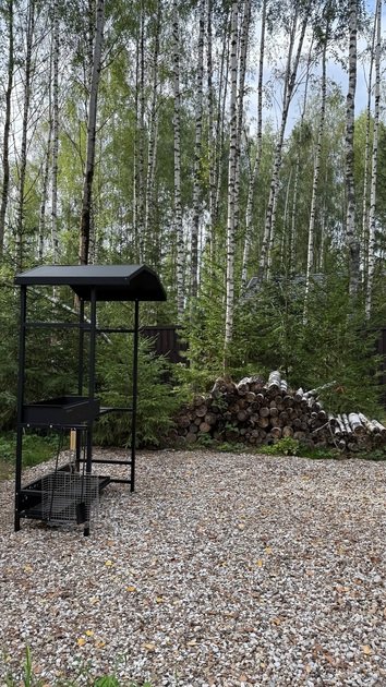 На территории есть мангальная зона для уединенного отдыха, парковка и лес прямо за порогом.