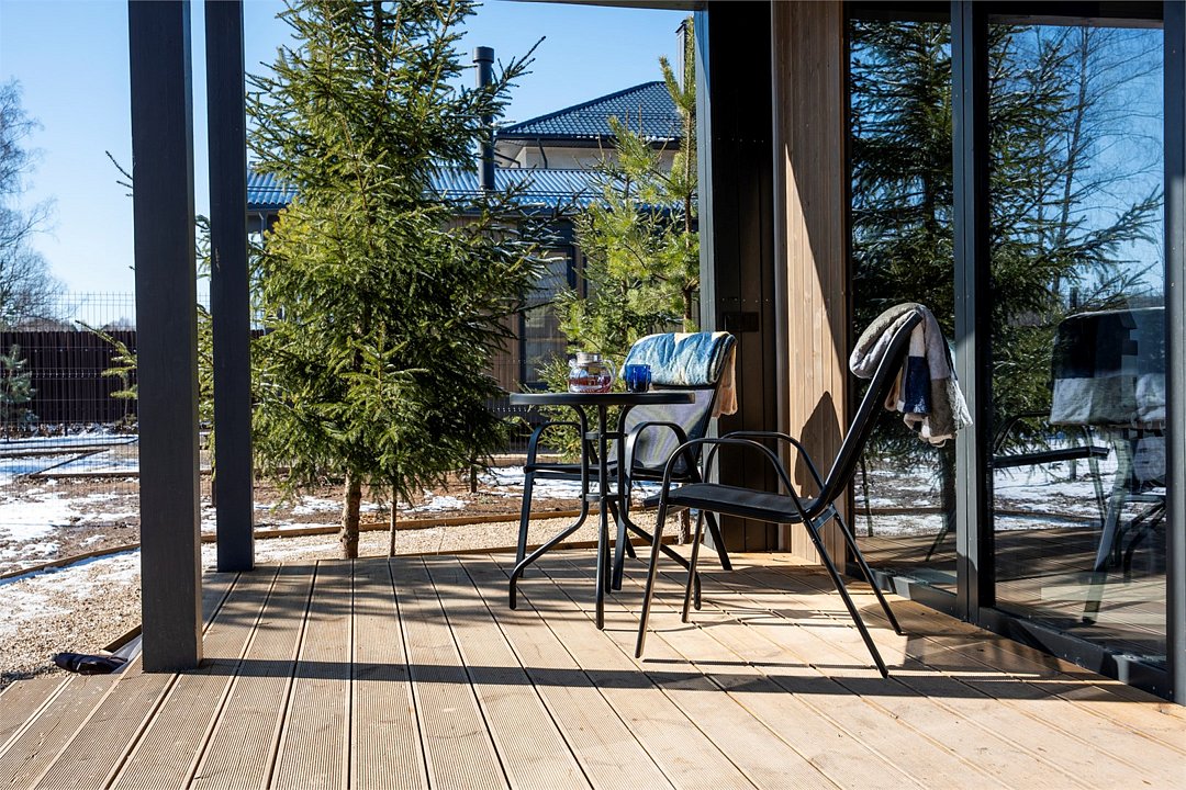 Дом наполнен всем необходимым для идеального отдыха, также для работы, если Вы хотите совместить эти 2 пункта. Из дома и террасы открывается чудесный вид в лес. Через большие панорамное остекление дома вы сможете насладиться видом леса, а утром услышать пение птиц.