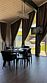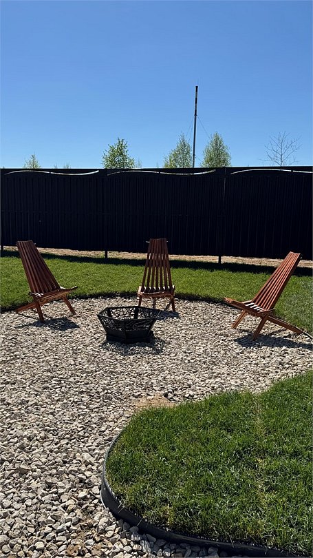 Уютная костровая зона с уличными креслами и мягкими пледами — это идеальное место для того, чтобы гости могли насладиться теплом огня под звездным небом. Здесь создаются прекрасные условия для душевных бесед с близкими и приятного времяпровождения на свежем воздухе.
