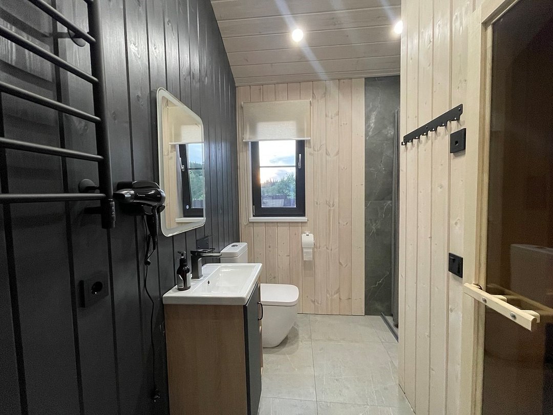 В доме есть всё для вашего комфортного отдыха: 3 уютные спальни с ортопедическими матрасами, кухня-гостиная, полностью оборудованная современной бытовой техникой и набором посуды, чистое белье и полотенца, средства для душа, Wi-Fi и Smаrt ТV со встроенной Яндекс-станцией. Для приятного расслабленного отдыха в доме имеется электрическая сауна на двоих с просторной душевой.