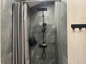 Электрическая сауна на двоих и просторная душевая.