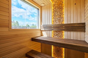 В доме оборудована сауна, где можно отдохнуть и насладиться паром в комфортной обстановке. Гости могут воспользоваться одним бесплатным сеансом длительностью до трех часов. Для повторного посещения необходимо заранее согласовать и оплатить услугу.