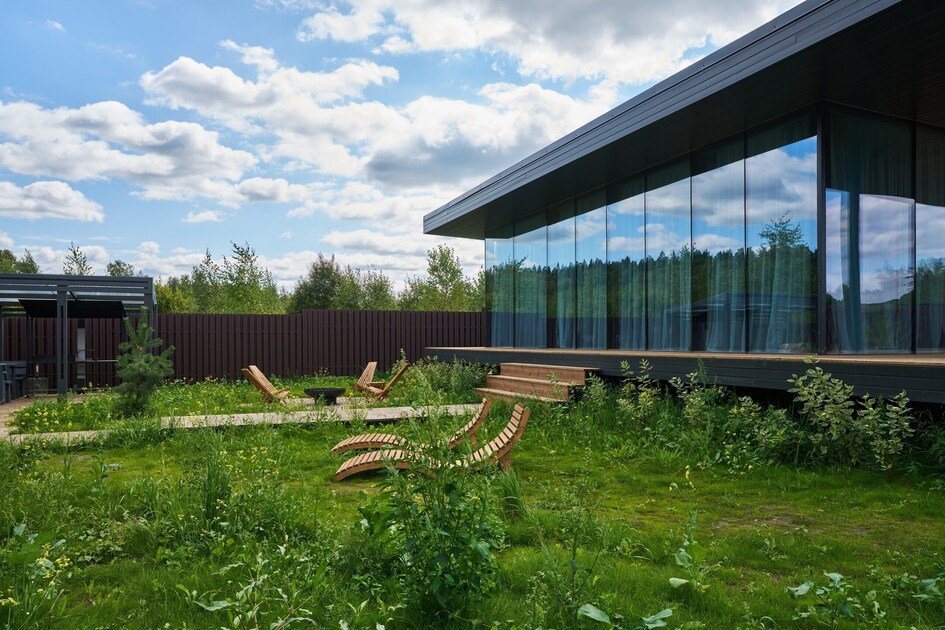 Особое внимание уделено релаксации — в доме есть сауна, где можно расслабиться и восстановить силы после насыщенного дня. Вечером, собравшись у костра, можно создать неповторимую атмосферу уюта и единства с природой под звездным небом. На территории также есть детская площадка, обеспечивающая веселье для маленьких гостей.