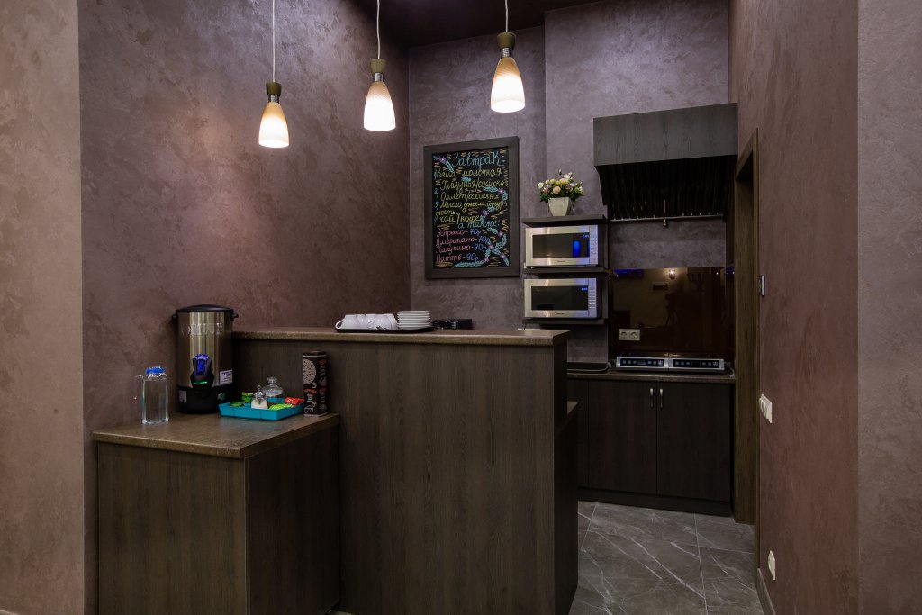На первом этаже расположено кафе, где гостям предложат завтрак по предварительному заказу.