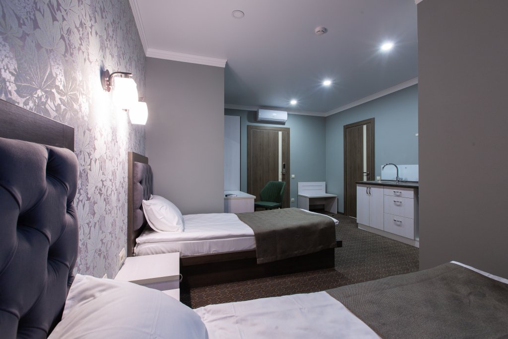 В отеле нет одинаковых номеров. Категории номеров варьируются от одноместных до трёхместных, созданных для отдыха всей семьей. Уборка номеров проводится ежедневно, смена белья и полотенец один раз в четыре дня. Душевые комнаты комплектуются индивидуальными туалетно-косметическими принадлежностями.