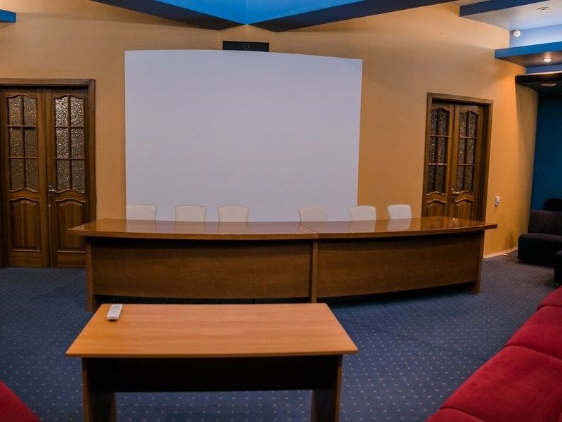 Для деловых встреч, переговоров и совещаний есть конференц-зал площадью 70 м², рассчитанный на 50 мест. Зал оснащен необходимым презентационным оборудованием.