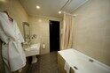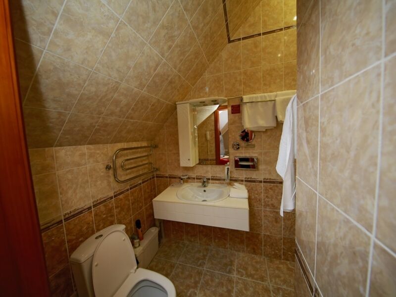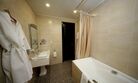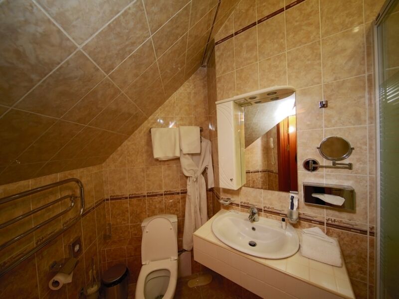 Второй номер данной категории (42) размещен на четвертом, мансардном, этаже гостиницы. Балкон с видом на уютный двор и парковую зону комплекса с многолетними дубами, пешеходными дорожками и беседками.