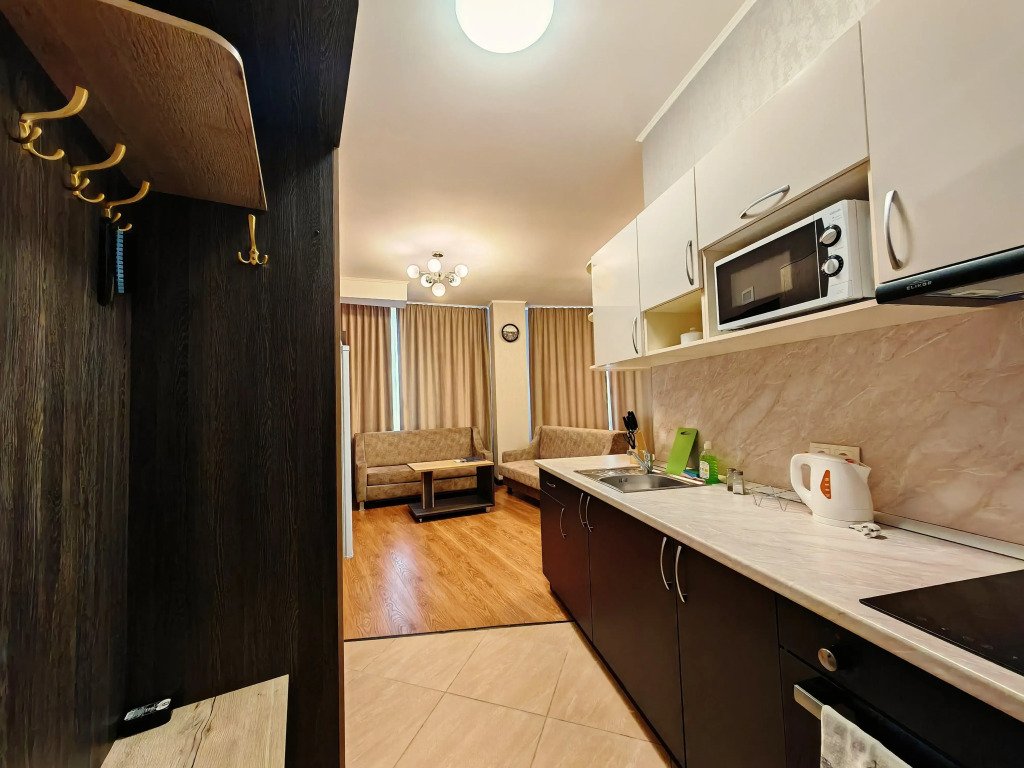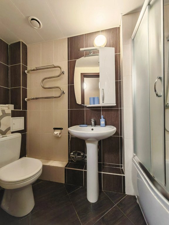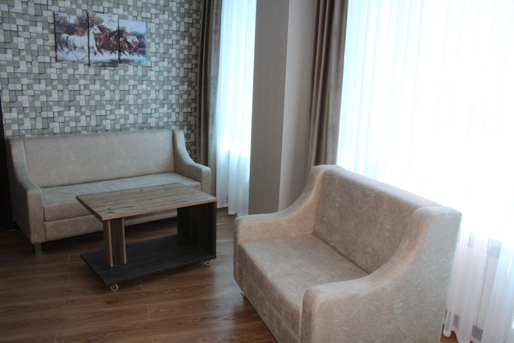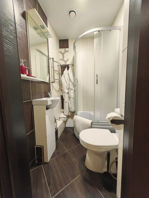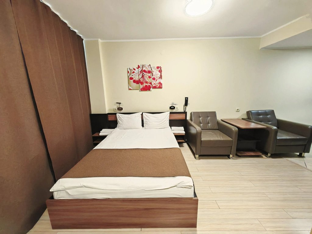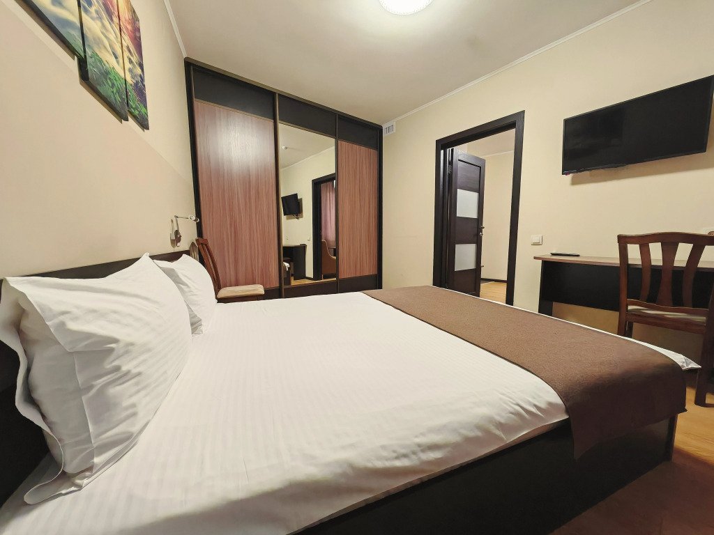 Номер уютно обставлен и оснащён необходимым, чтобы отдохнуть после долгого и насыщенного дня. Имеются телевизор и халат. Перечисленные услуги есть не во всех номерах.