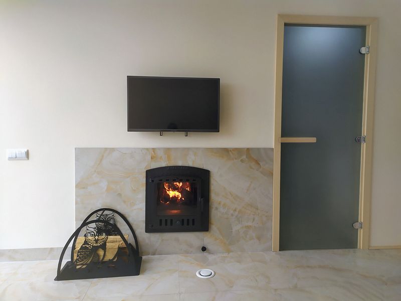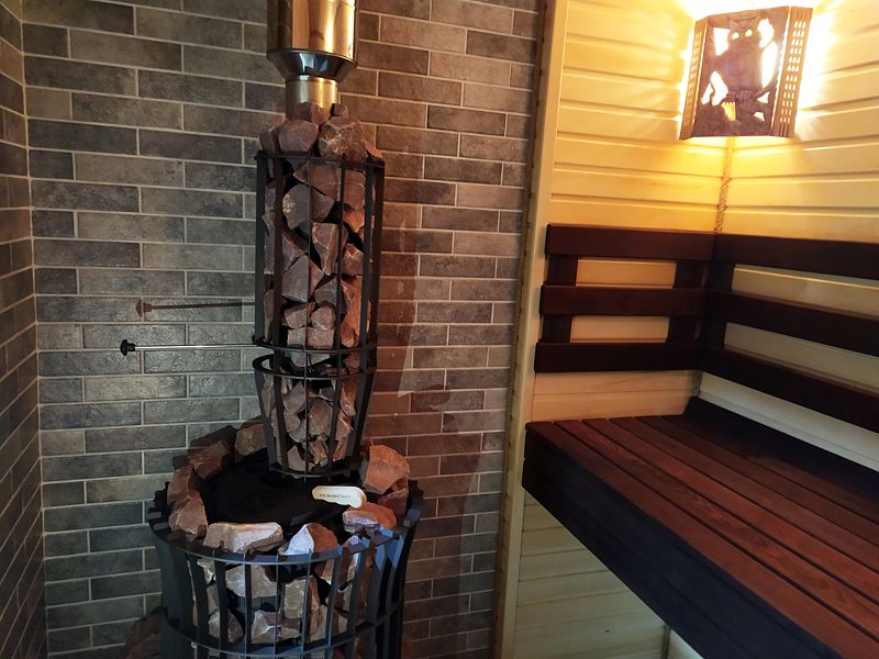 Инфраструктура: зона отдыха, душПарная выполнена в лучших традициях, широкие полки, система свежее дыхание, чугунная печь с закрытой каменкой. Печь наполнена жадеитом и обложенная малиновым кварцитом. В парной ароматные лекарственные травы. Во время парения запрещено употреблять алкогольные напитки.