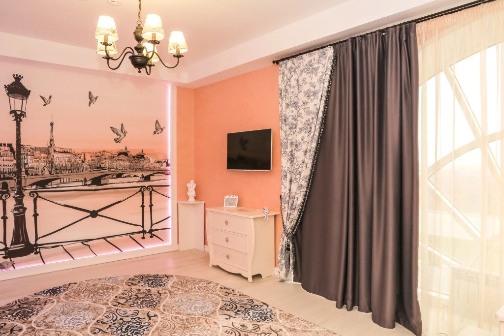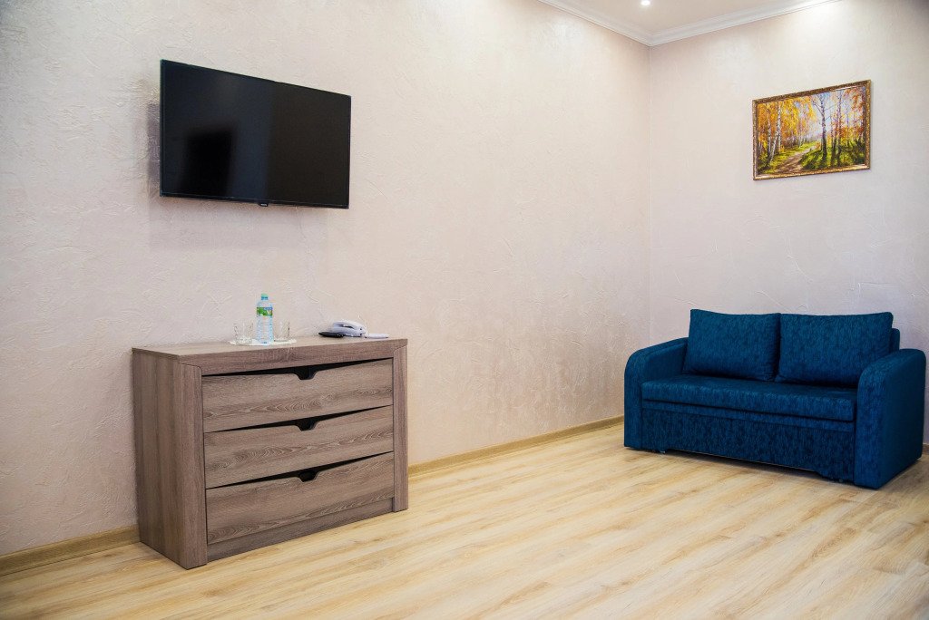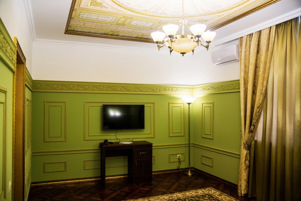Номер уютно обставлен и оснащён необходимым, чтобы отдохнуть после долгого и насыщенного дня. Имеются телевизор и халат. Оснащение зависит от выбранной категории номера.