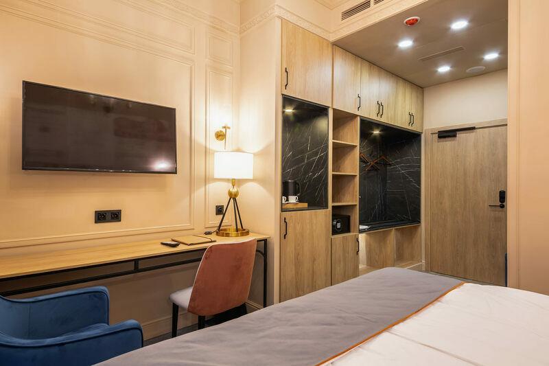 Во всех номерах установлены телевизор с плоским экраном и сейф. В распоряжении гостей собственная ванная комната с душем и халатами. В некоторых номерах бутик-отеля «ЩЕПКИНЪ» также обустроен гостиный уголок. Письменный стол и чайник имеются во всех номерах.