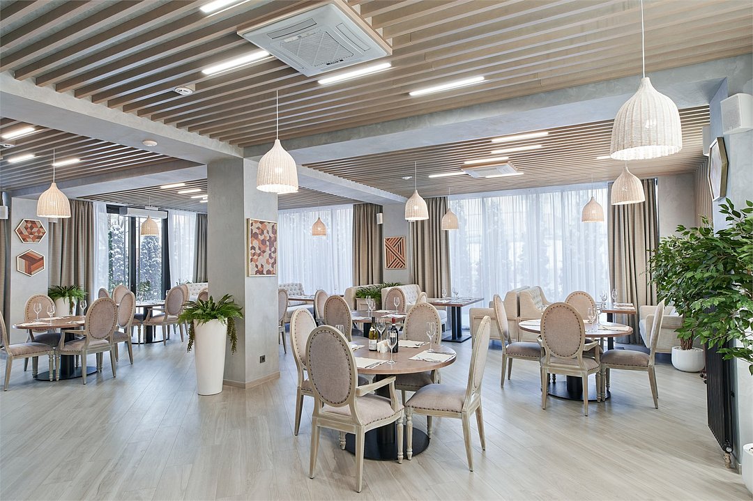 На территории отеля расположены ресторан "WHITE HILL" и веранда "4 сезона", где гости в изысканной и уютной атмосфере могут насладиться широким разнообразием блюд и напитков европейской кухни. Сотрудники отеля помогут организовать мероприятия для особенных случаев: от дня рождения в узком кругу до роскошной свадьбы. Для непринужденных деловых бесед, приема посетителей и просто отдыха после напряженного дня как нельзя лучше подойдет лобби-бар в главном холле. Элегантные и эксклюзивные напитки, вкусное меню, расслабляющий интерьер, интересные книги в мини библиотеке безусловно оставят приятные воспоминания о УАЙТ ХИЛЛ ОТЕЛЬ.